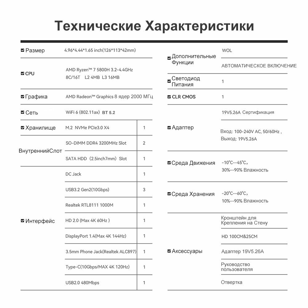 Мини ПК Beelink SER5 Max (AMD Ryzen 7 5800H (3.2 ГГц), RAM 32 ГБ, SSD 500 ГБ, AMD Radeon Graphics, Windows 11 Pro, черный интересное: