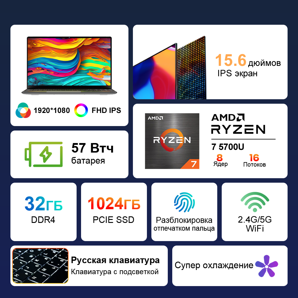 Ninkear A15 Plus ноутбук 15.6", AMD Ryzen 7 5700U (1.8 ГГц), RAM 32 ГБ,1TБ SSD, AMD Radeon Graphics, Windows11, серебристый интересное: