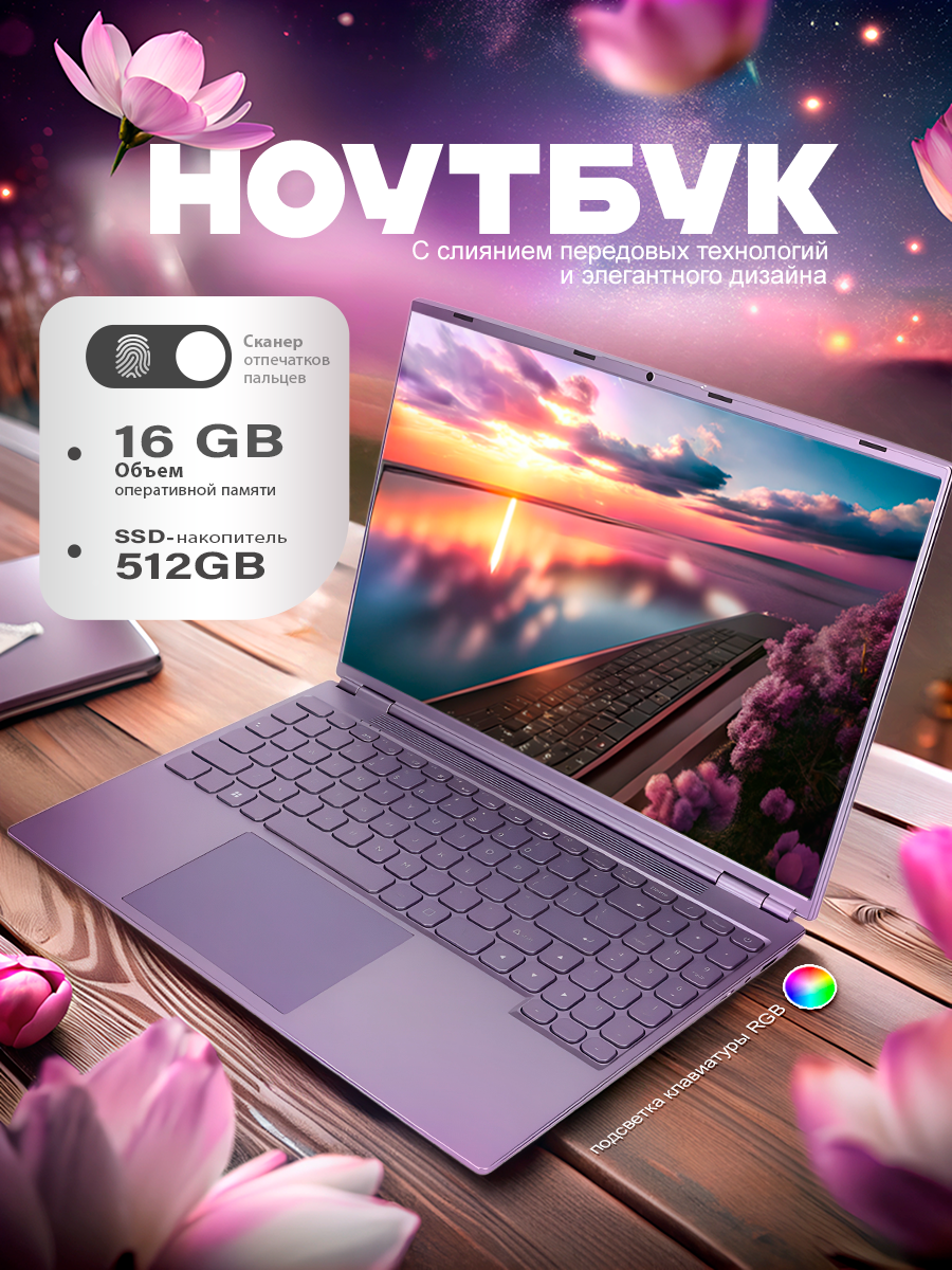 Купить Ноутбук для работы и учебы iYon W19 PRO 16+512 ГБ ( 15.6" дюм ), фиолетовый