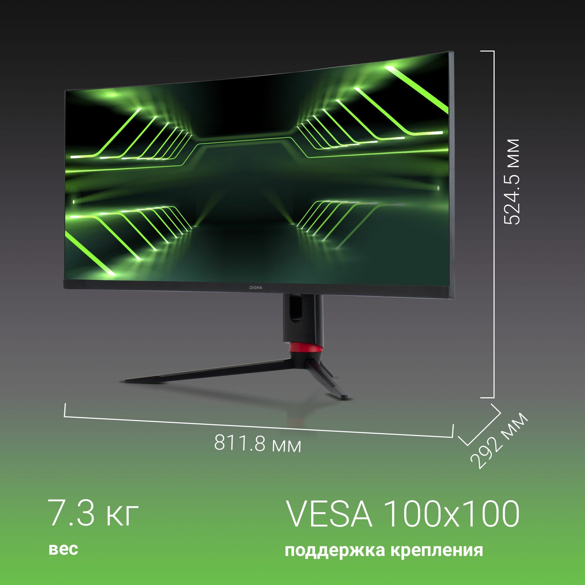 34" Монитор Digma Overdrive 34A710Q, 3440x1440, VA, 165Гц, 2хHDMI, 1хDP, изогнутый, черный [dm34vg01]