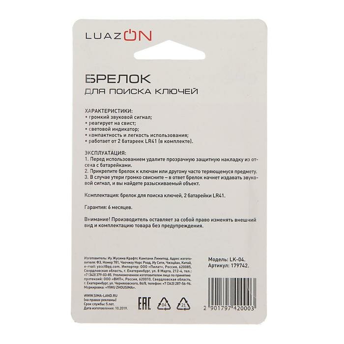 Ниже Вы можете прочитать отзывы на Брелок для поиска ключей Luazon LKL-04, пластик, микс 179742, ознакомится с подробными характеристиками, посмотреть интересные обзоры и фотографии на Брелок для поиска ключей Luazon LKL-04, пластик, микс 179742.