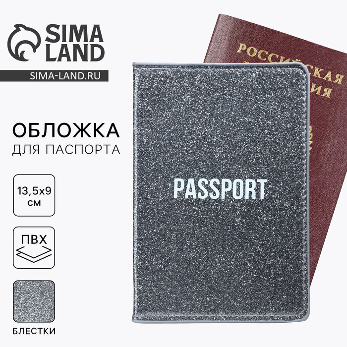 Обложка для паспорта «Passport», ПВХ блестящая, цвет серый, 9954023 интересное:
