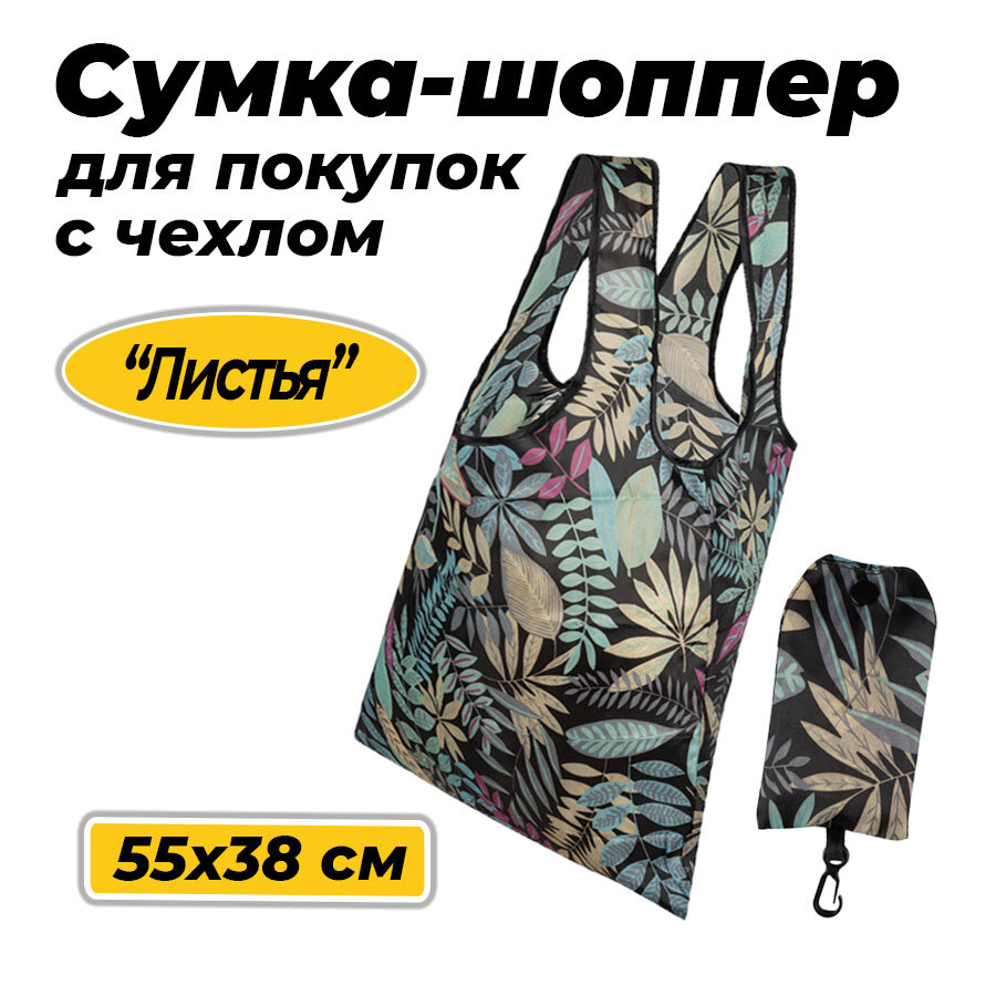 Сумка-шоппер для покупок складная с чехлом "Листья", размер 38 х 55см, материал - полиэстер интересное: