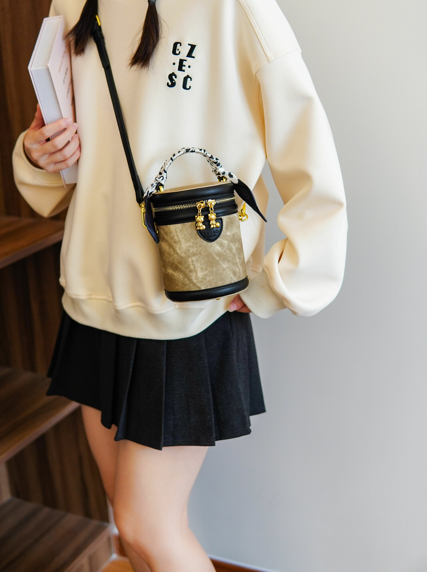 Женская сумка бочонок Beibaobao / Сумка тренд ведро , бежевый