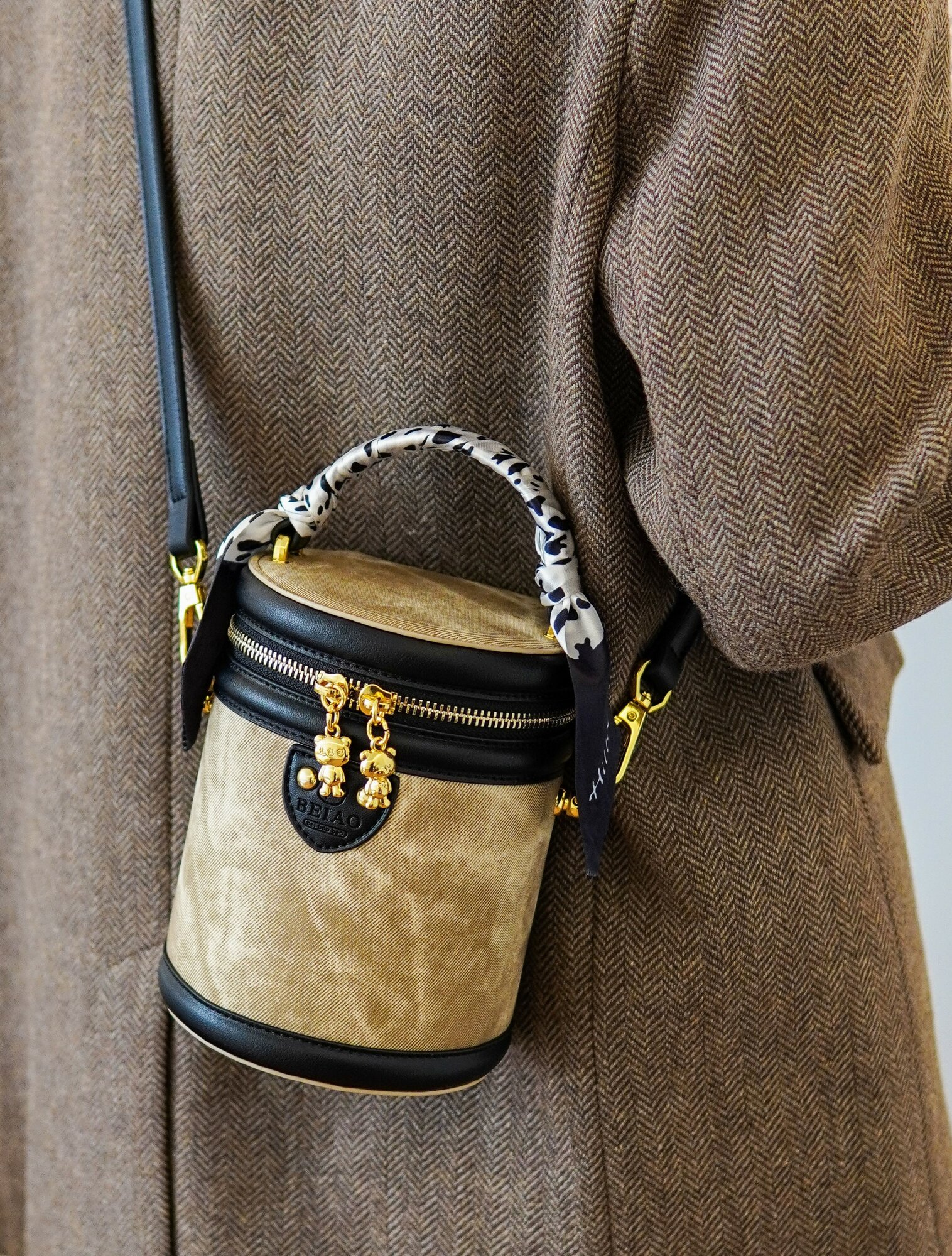Сумка бочонок BeiBaoBao, фактура матовая, коричневый, бежевый