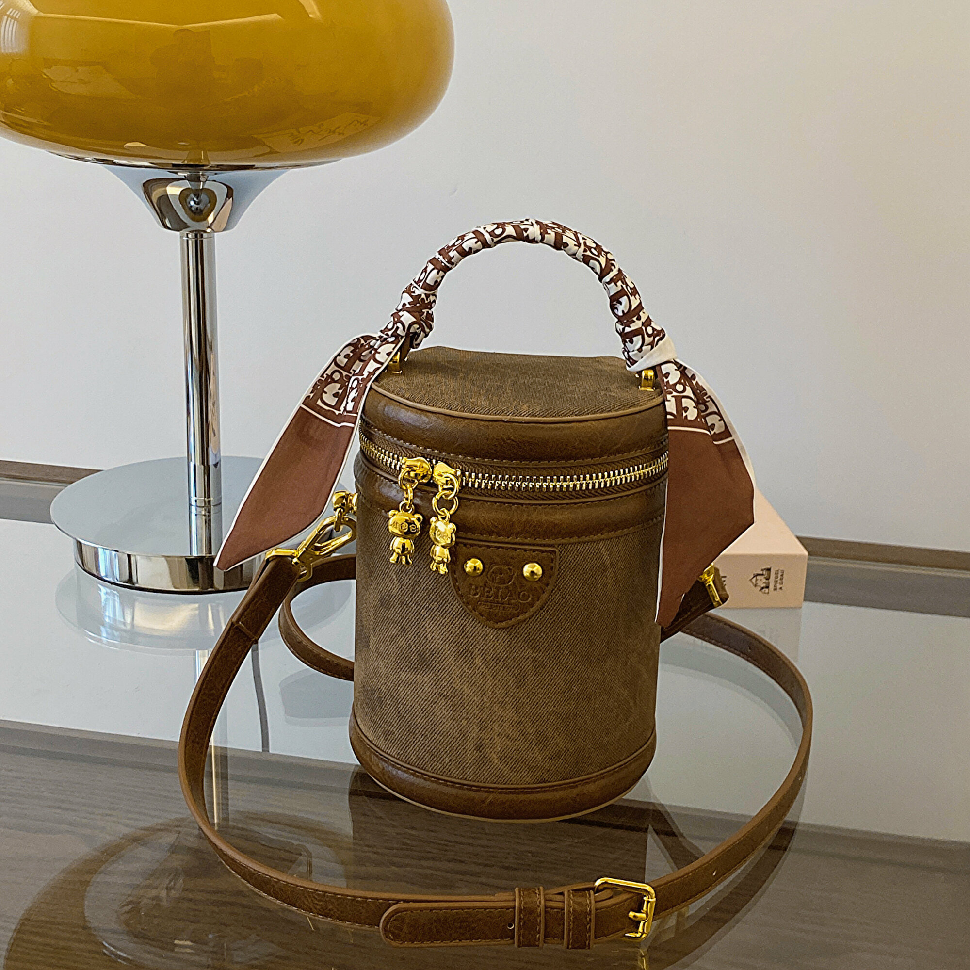 Купить Женская сумка-бочонок Beibaobao, коричневая, с принтом, с плечевым ремнем y2k