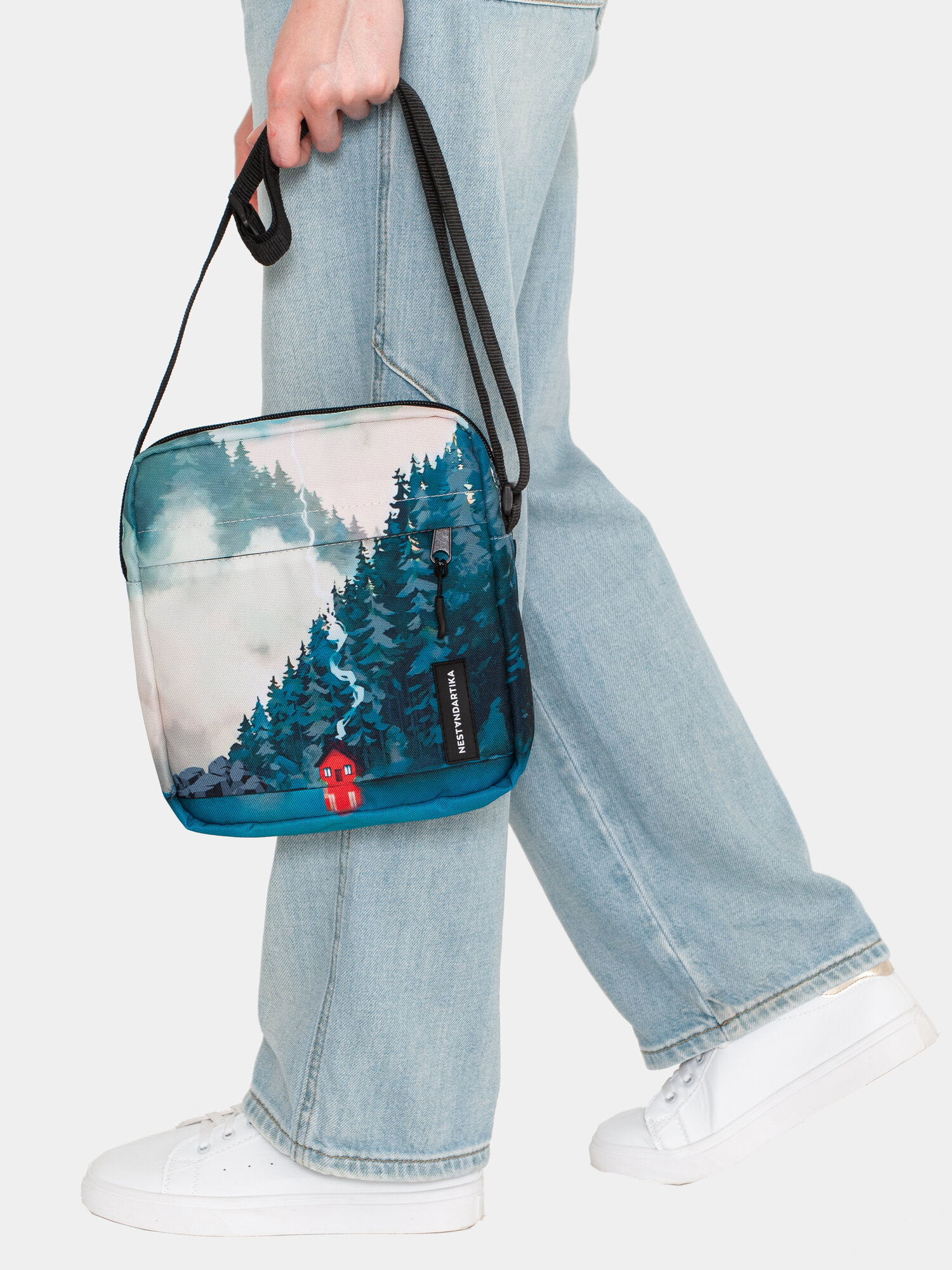 СохранитьСумка-мессенджер студенческая через плечо с принтом Домик у озера интересное:
