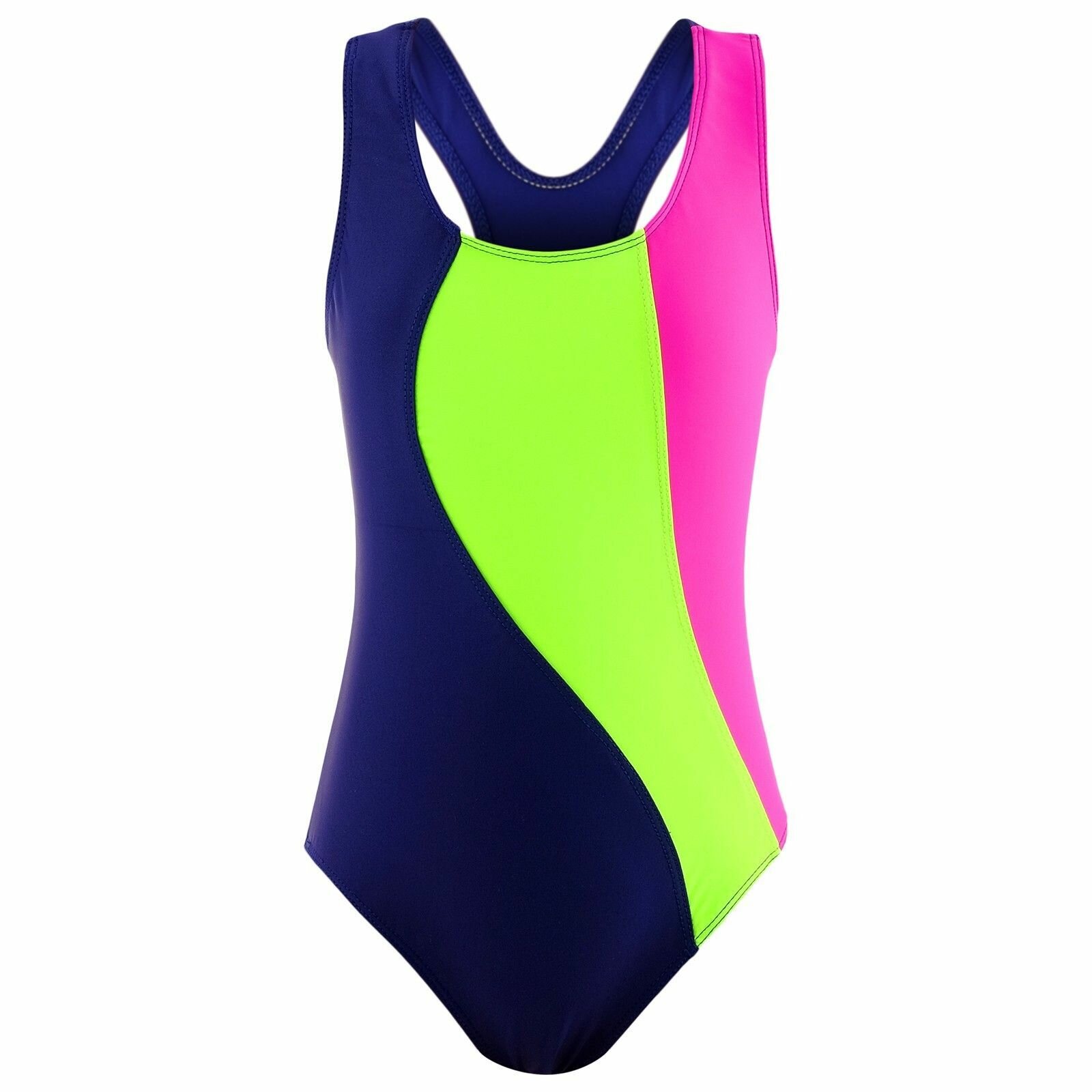 Купальник для плавания сплошной «Волна», тёмно-синий/зелёный неон/фуксия