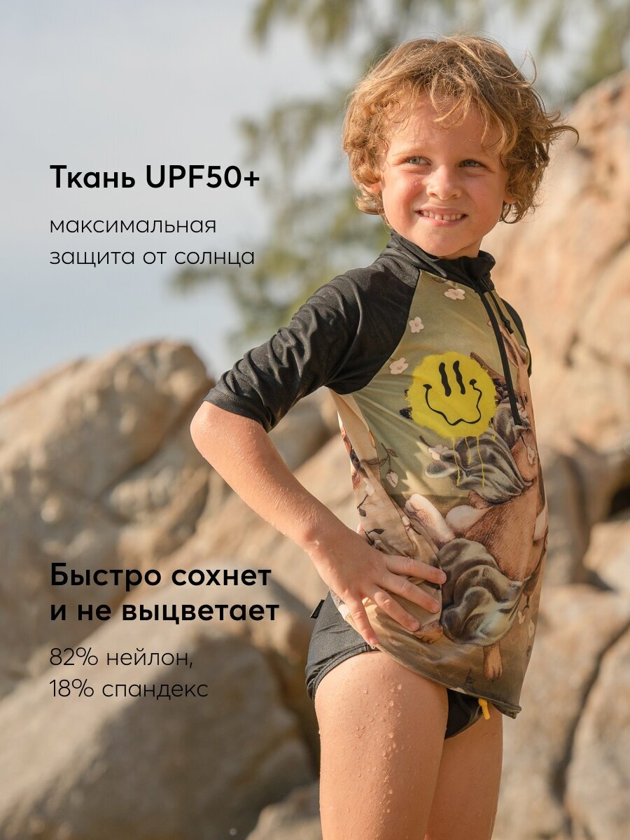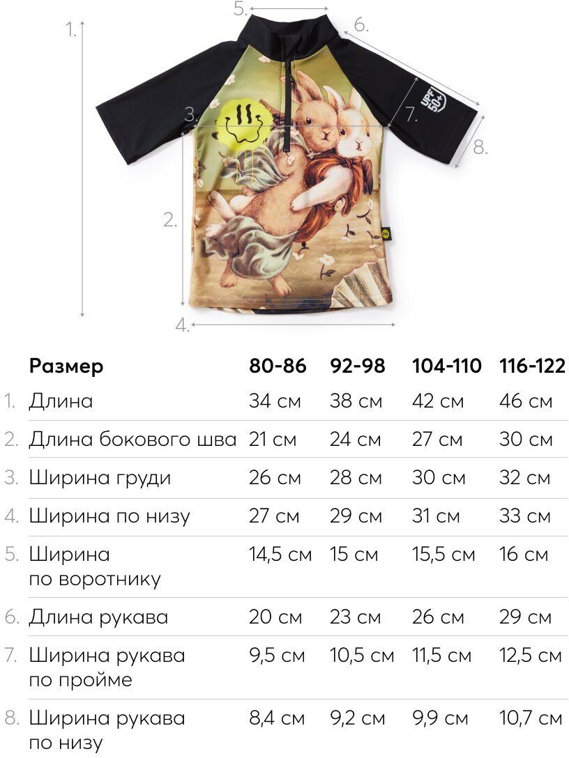 50661, Футболка для плавания детская Happy Baby футболка купальная, солнцезащитная, с рукавами, черная с кроликами, размер 116-122 интересное: