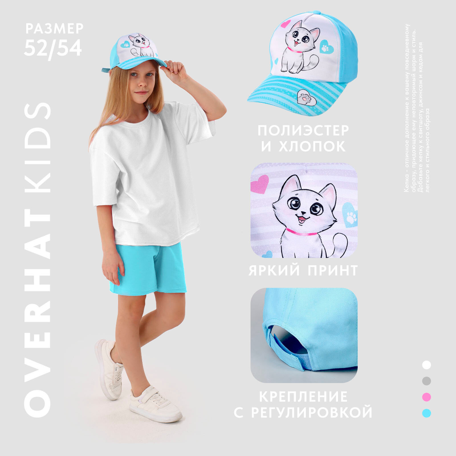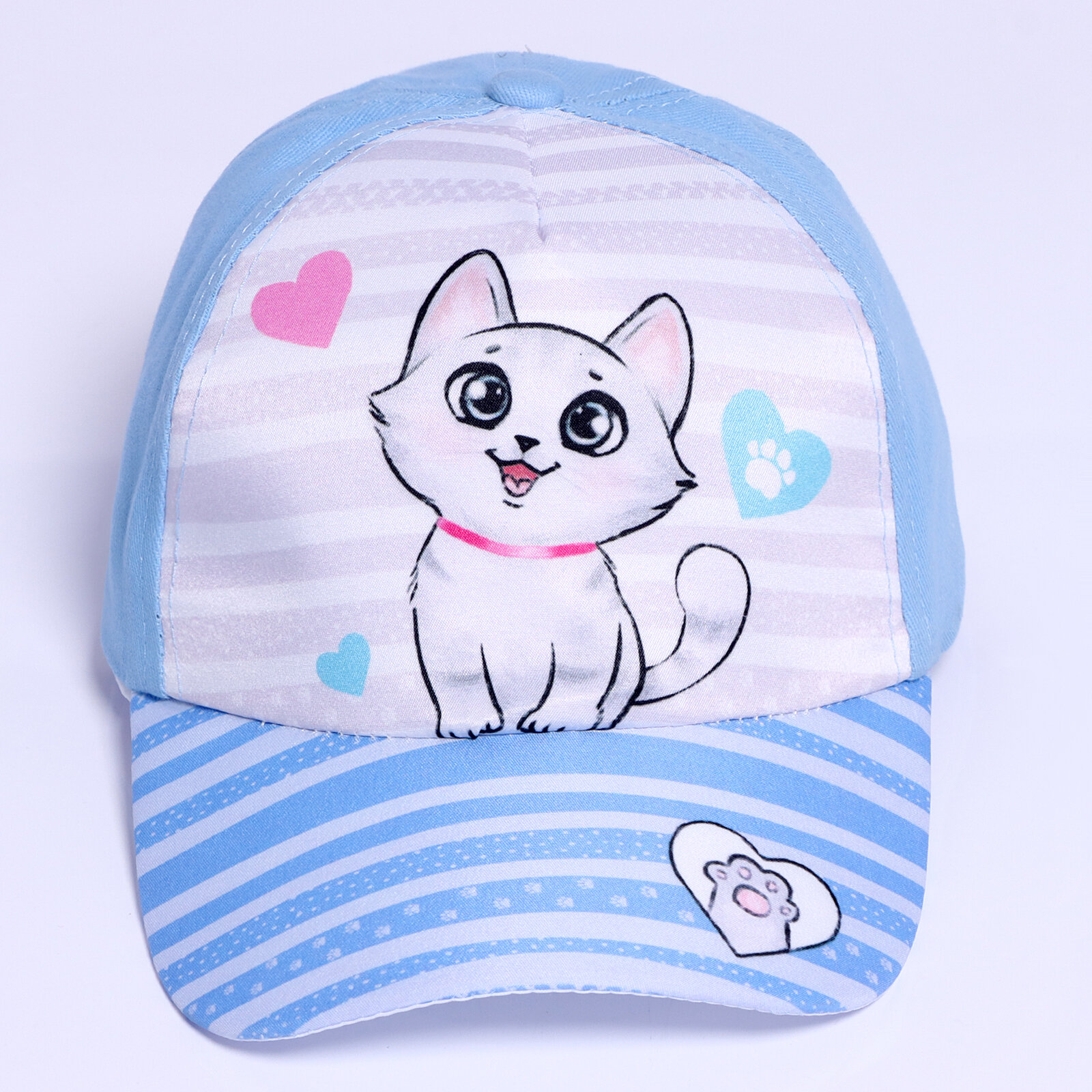 Кепка детская для девочки «Котик», р-р. 52-54 см, 5-7 лет, микс