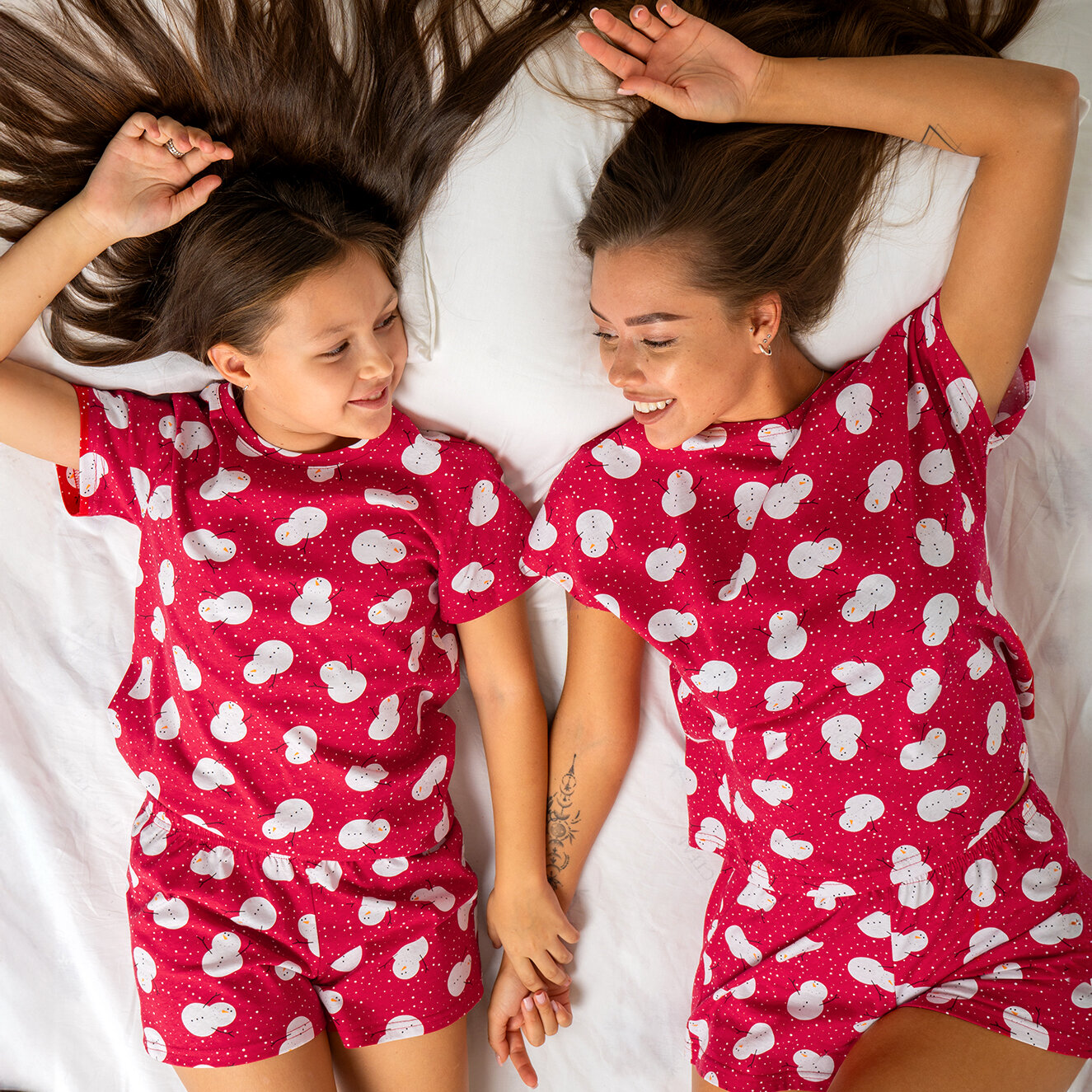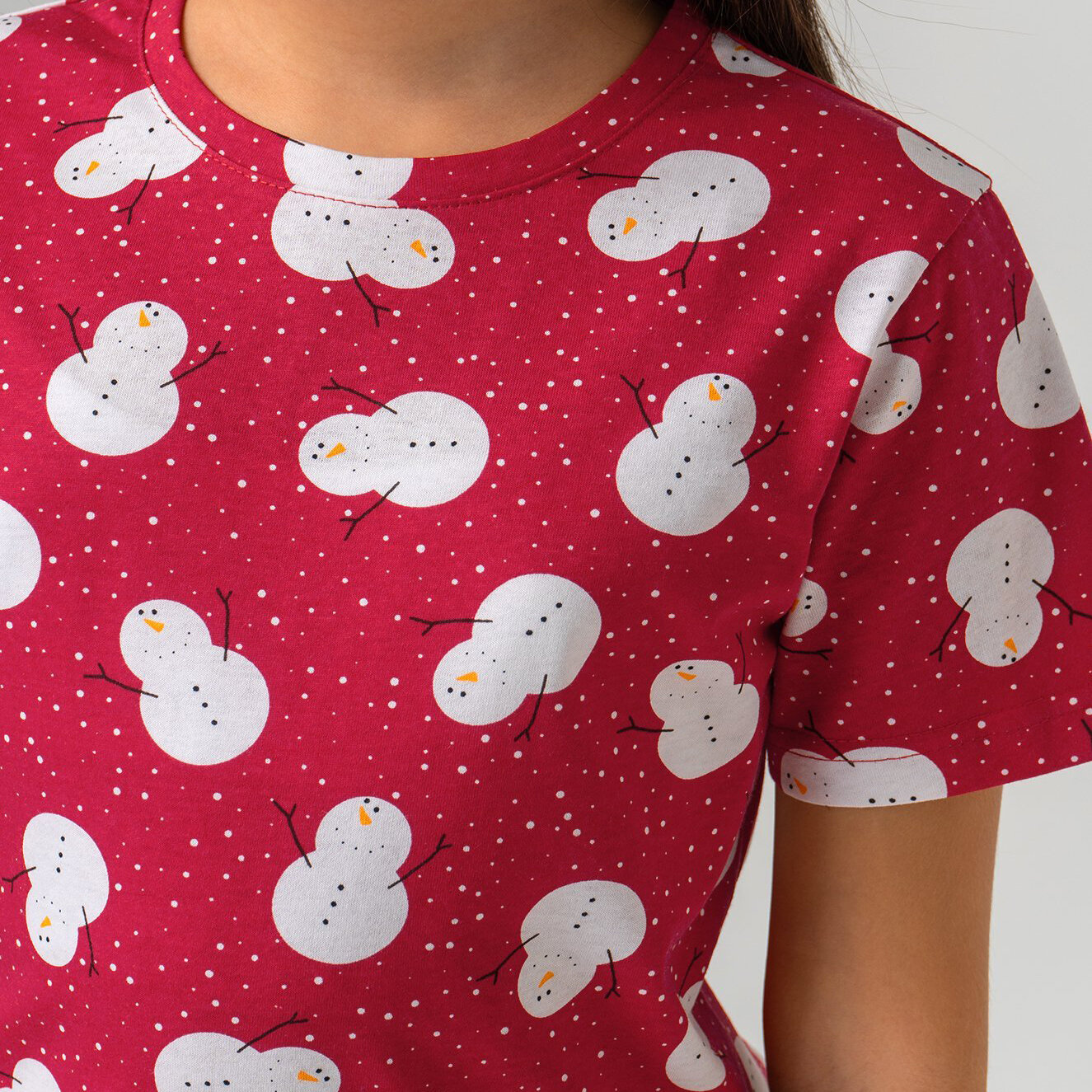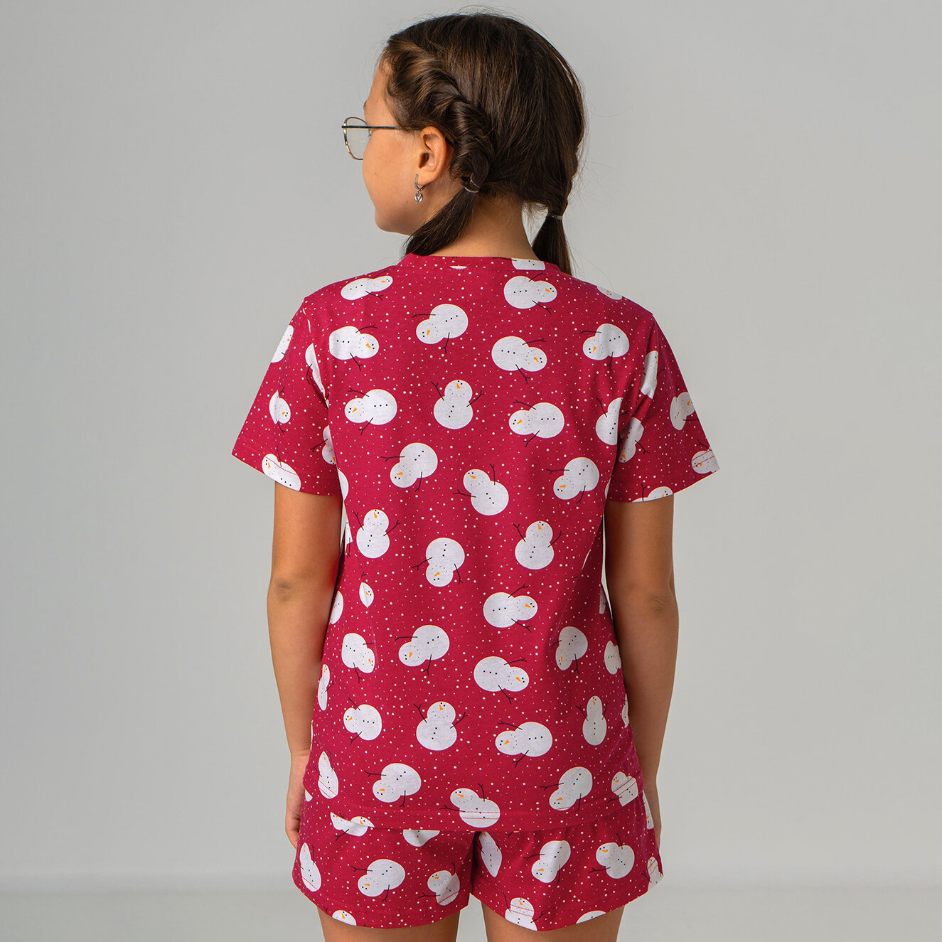 Пижама с шортами новогодняя детская хлопок Happyfox HF2423SP снеговики.на.красном 140