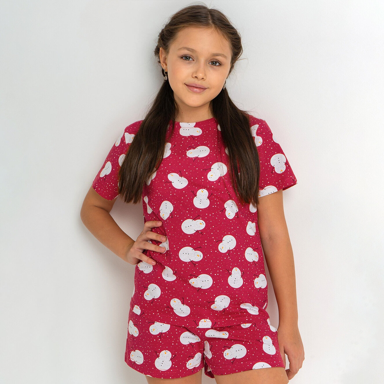 Пижама с шортами новогодняя детская хлопок Happyfox HF2423SP снеговики.на.красном 146