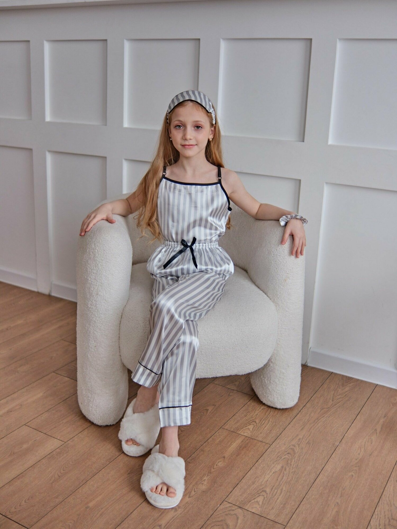 Пижама для девочки детская с штанами и с шортами шелковая 7 в 1