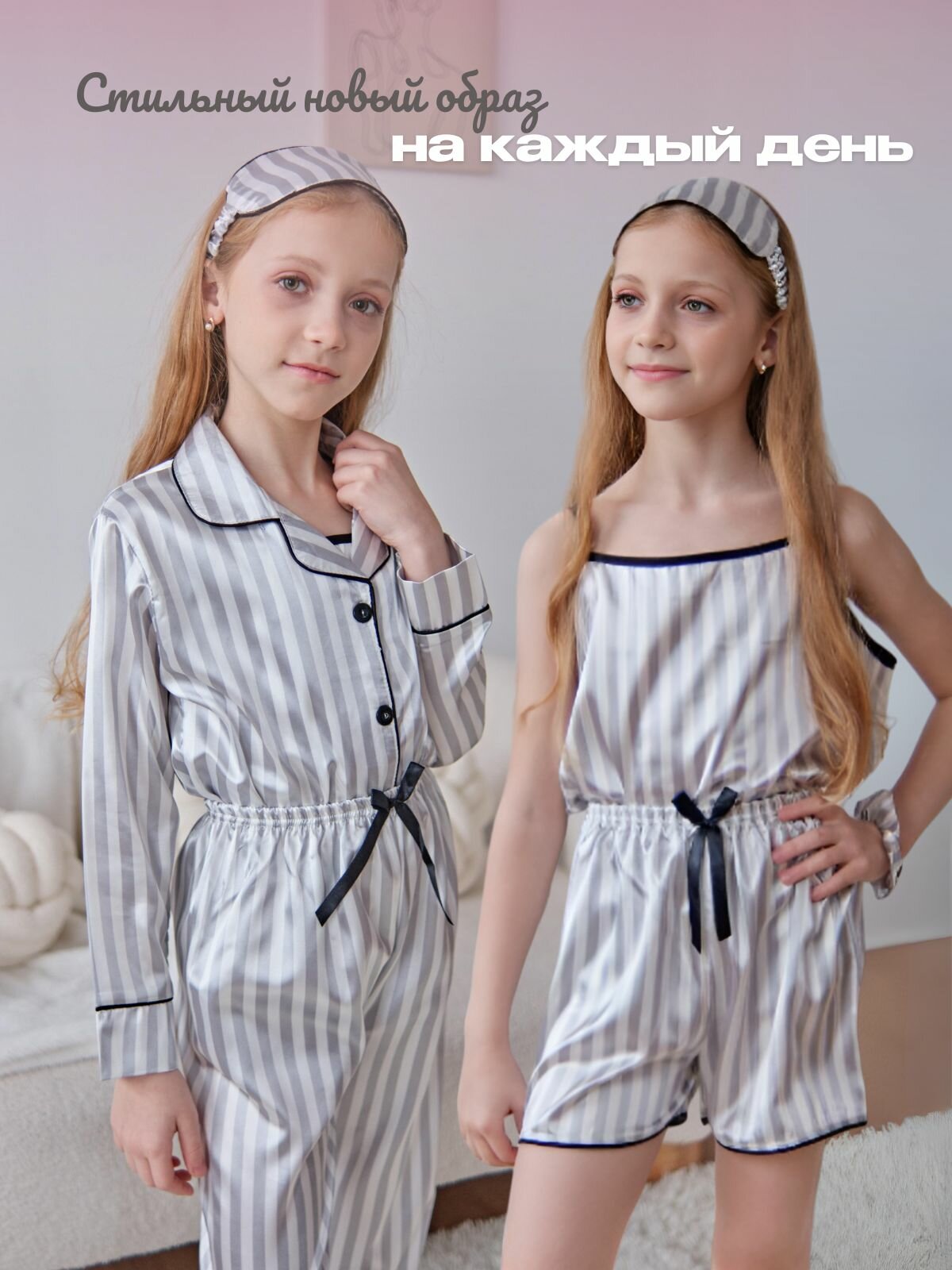 Пижама для девочки детская комплект со штанами с шортами 7 в 1 шелк