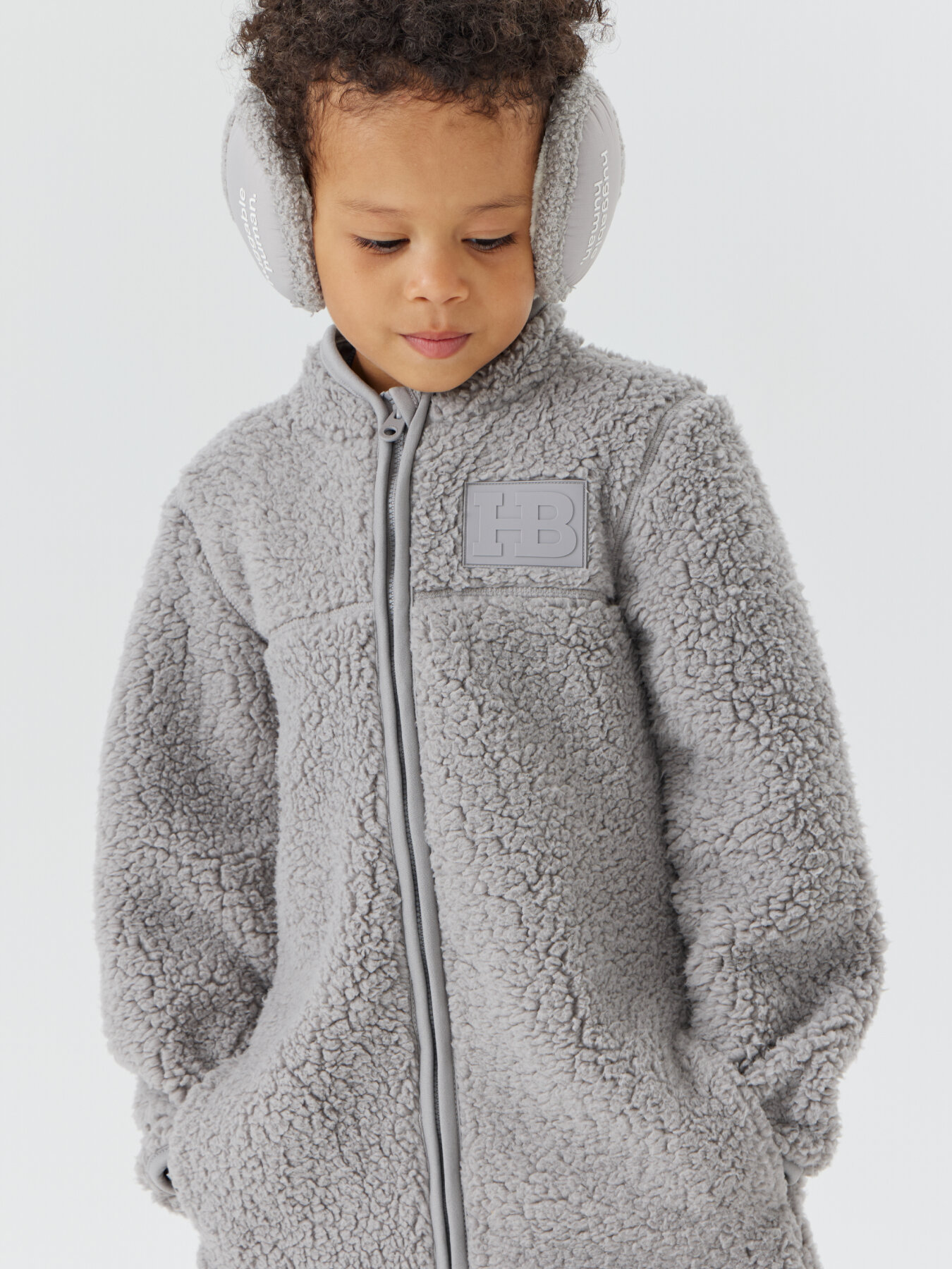 89058, Комбинезон детский Happy Baby, утепленный, флисовый, демисезонный для девочки и мальчика, серый, размер 104-110