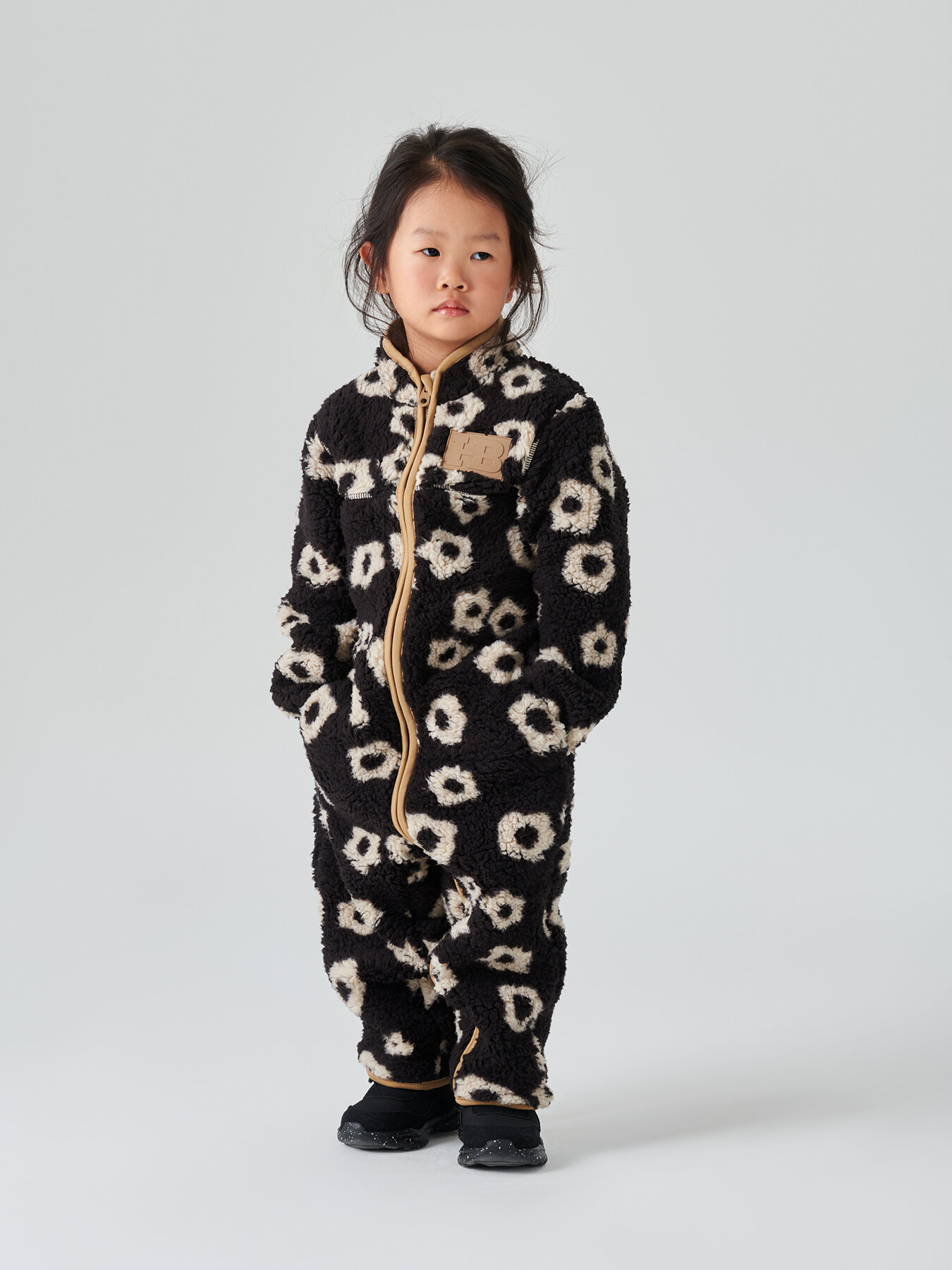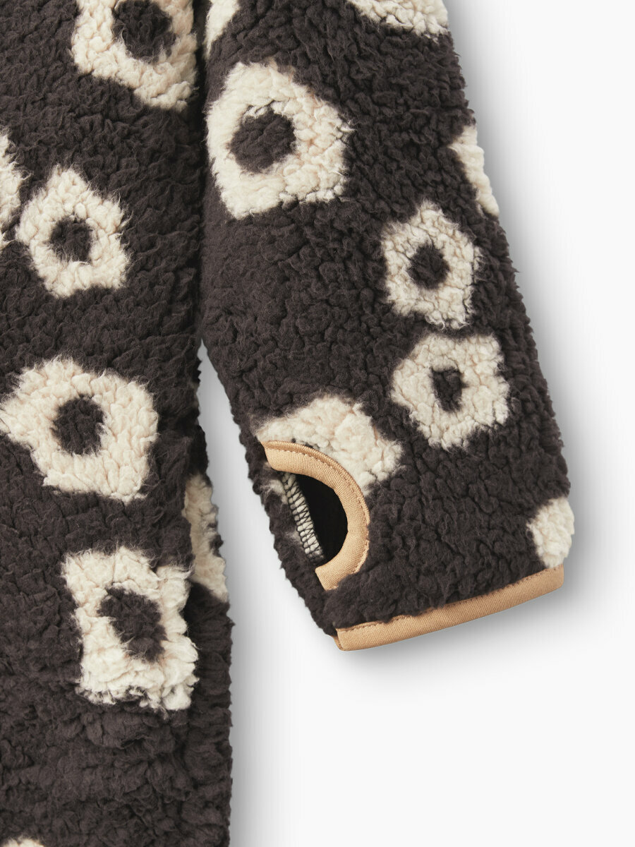 89058, Комбинезон детский Happy Baby, утепленный, флисовый, демисезонный для девочки и мальчика, черный с цветами, размер 80-86