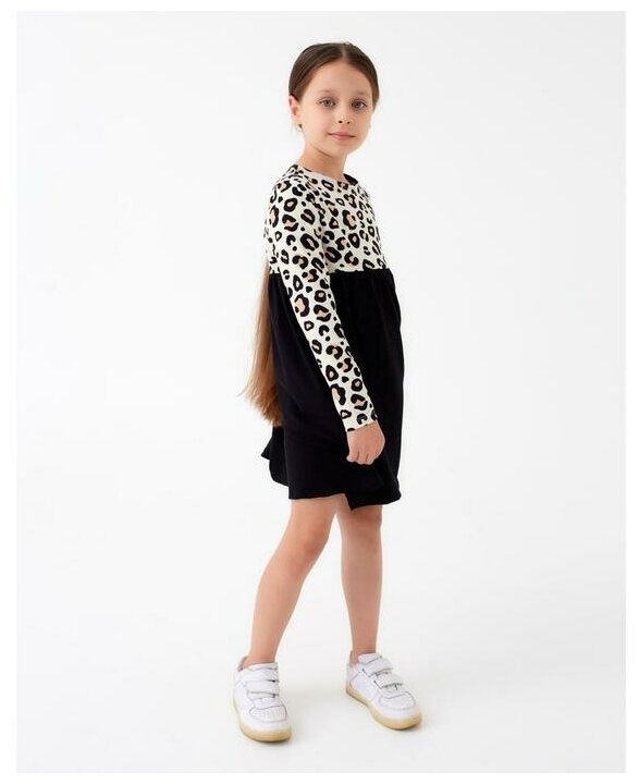 Купить Платье детское с дл. рукавом "Trendy" черный/леопард 28, Черный, 86-92