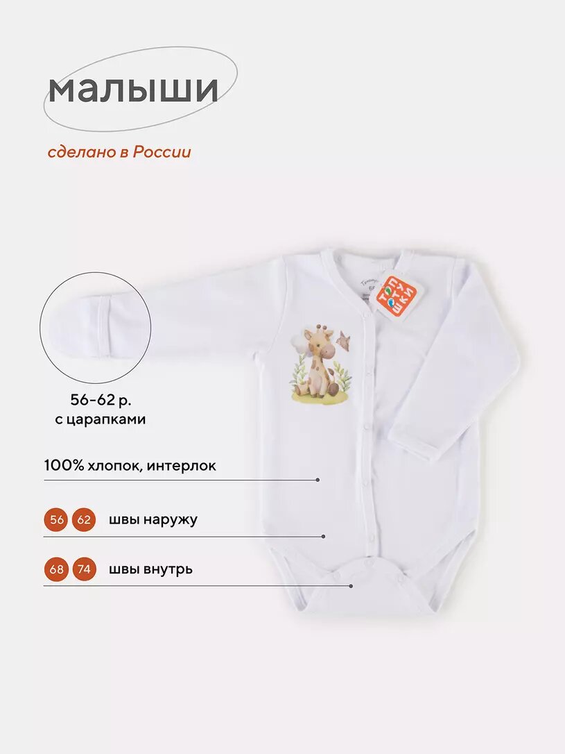 Боди Топотушки Малыши с длинным рукавом на кнопках белый 6458-68