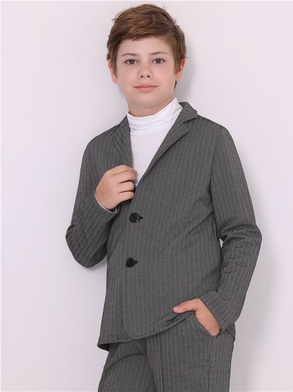 Купить Костюм для мальчика школьный брюки и пиджак жаккард Апрель 2ПДБ5710176/982/*/3189/*/*/*/* черный,серый 76-146