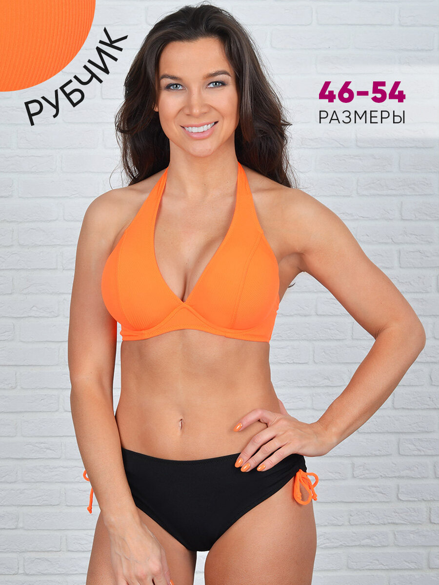 Купальник женский раздельный больших размеров MollenaLayers, размер 50, оранжевый, черный