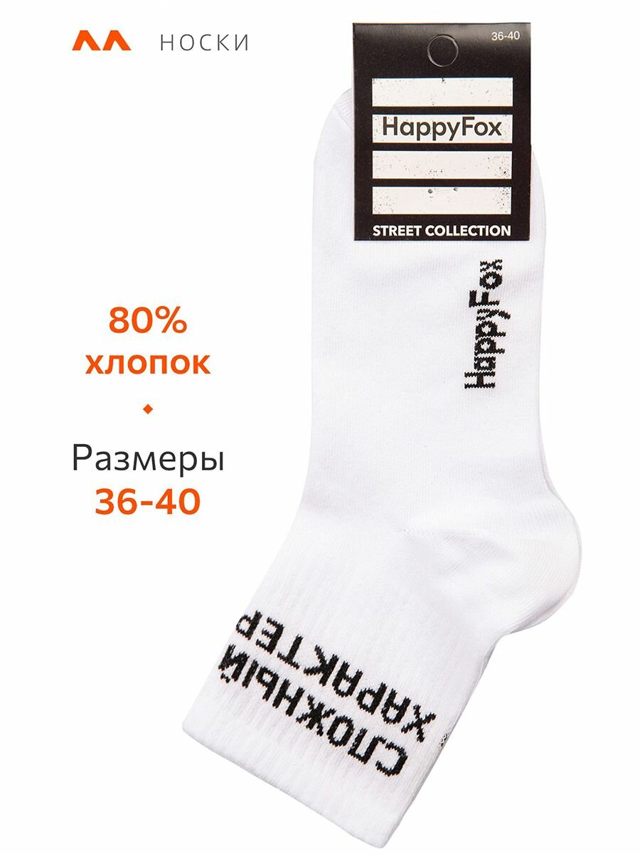 Купить Носки Happyfox с прикольной надписью хлопковые HF0238сложный.характер.белый