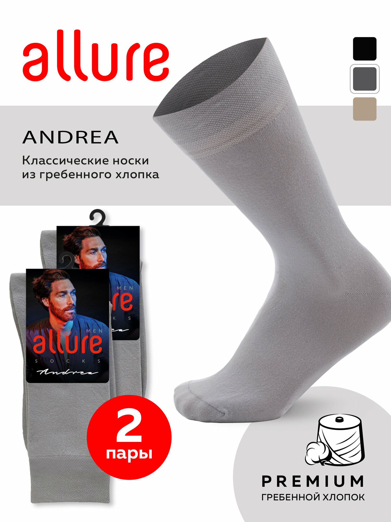Носки м. ALR ANDREA СВ.серый 3 (39-41) спайка 2 шт, носки мужские, классические, высокие, длинные, хлопок, набор мужских носков