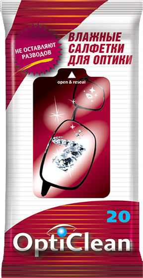 Влажные салфетки для очков и оптики Opti Clean Уход за очками и оптикой 1 упаковка (20 салфеток)