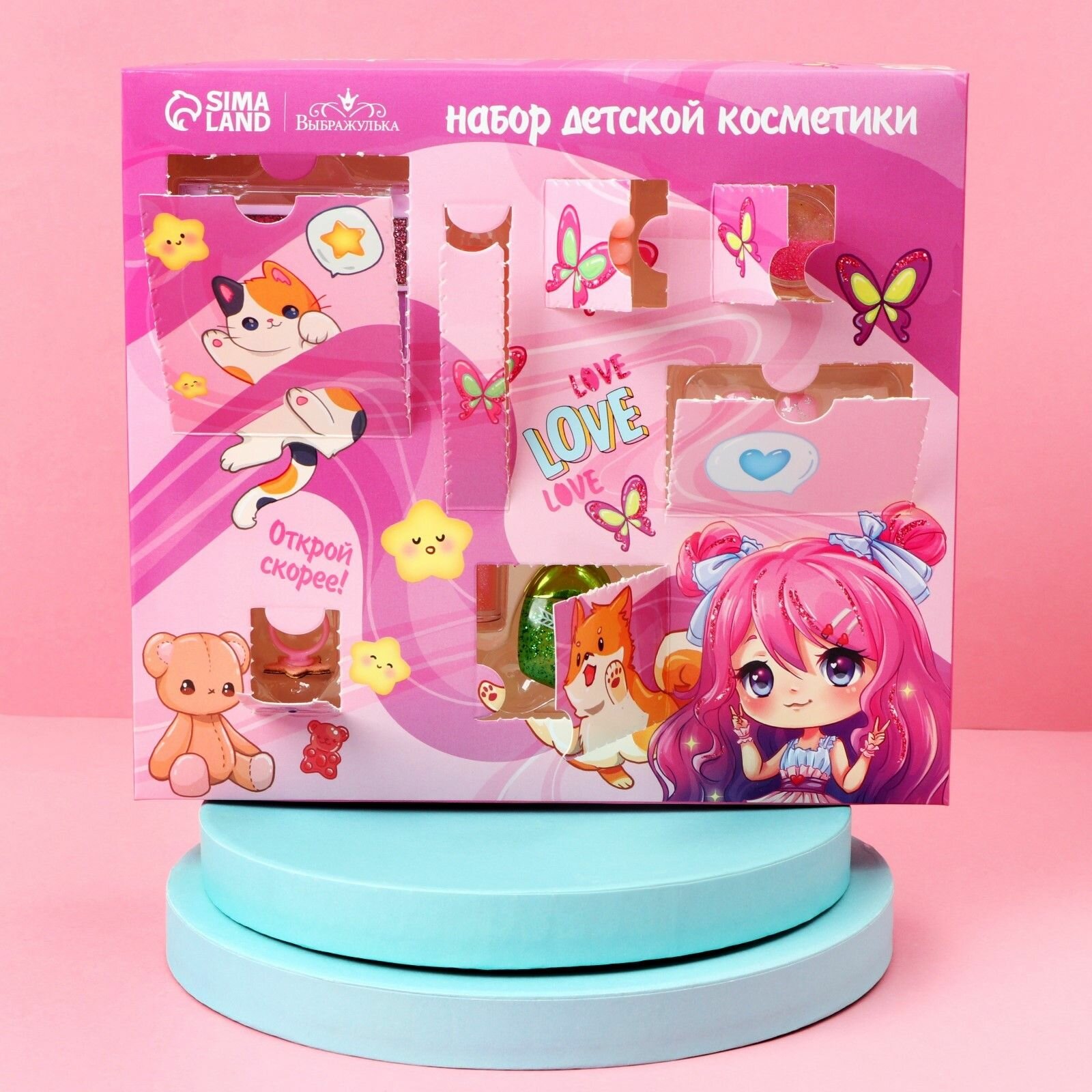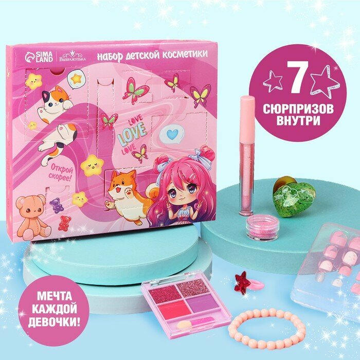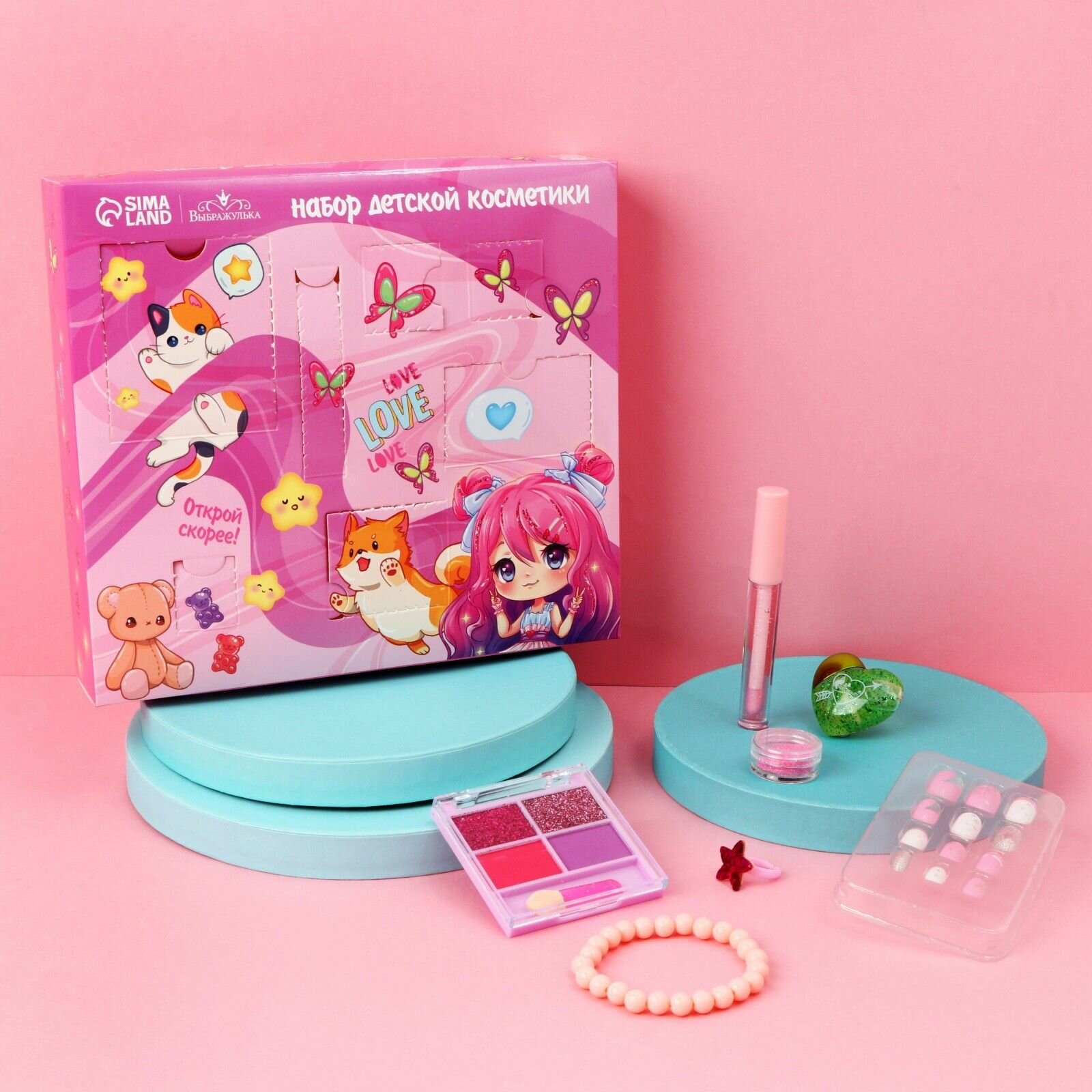 Набор детской косметики «Аниме», тени, блеск для губ, накладные ногти, глиттер, кольцо, браслет