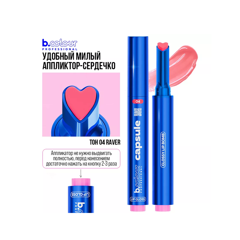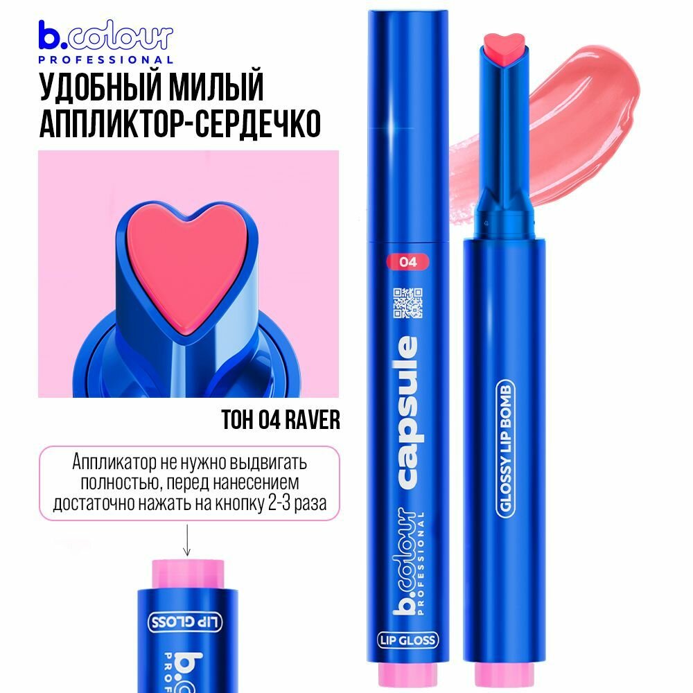 B.COLOUR PROFESSIONAL Блеск для губ розовый, увлажняющий, увеличивающий объем CAPSULE 04 RAVER
