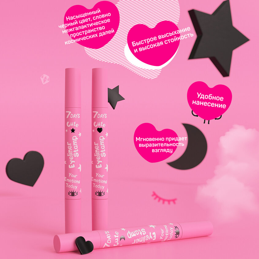 7DAYS Подводка для глаз, фломастер, жидкая, штамп CUTE, 210 Eyeliner&Moon black stamp