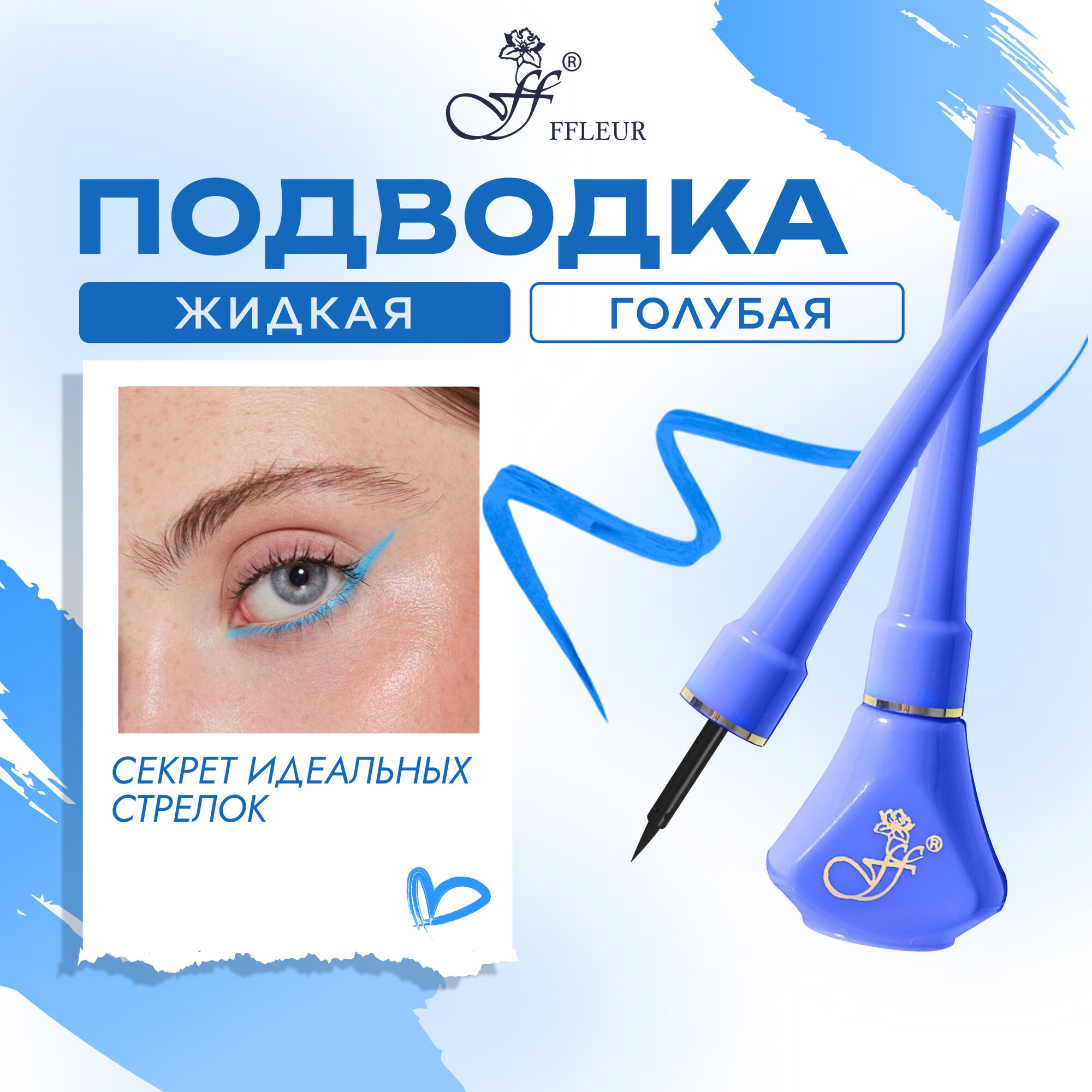 Подводка для глаз FFLEUR COLOR LINE для стрелок синяя, 5,5 мл