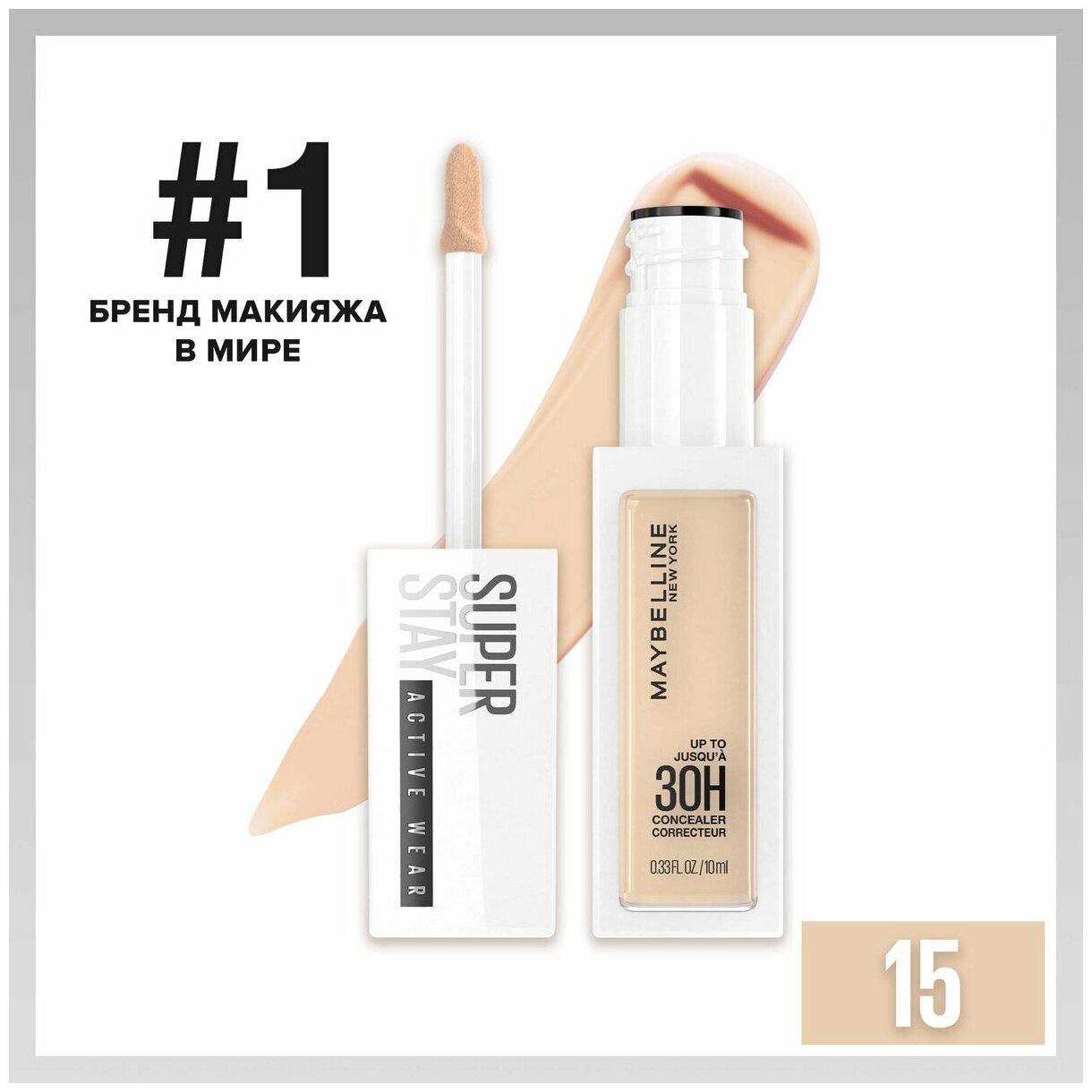 MAYBELLINE NEW YORK super stay active wear Стойкий консилер для лица, тон 15, 10 мл