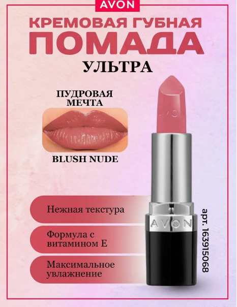 Увлажняющая кремовая губная помада Avon Ультра тон Пудровая мечта