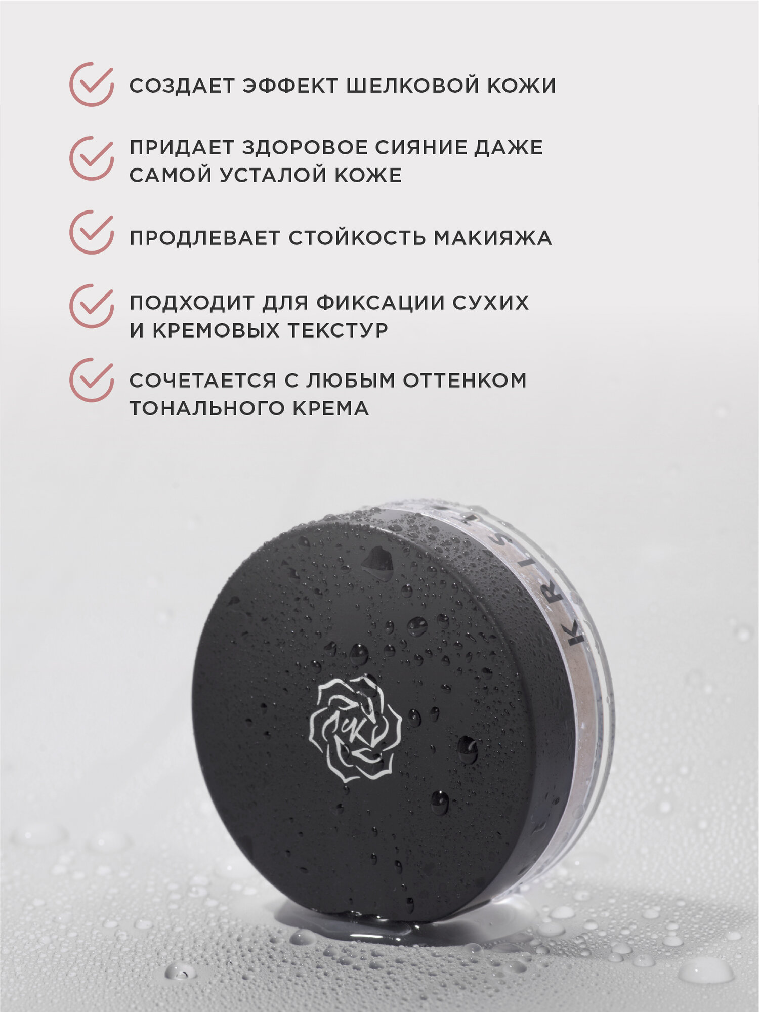 | Способ применения | для нанесения подойдет мягкая пушистая кисть. Высыпьте немного продукта в крышку, опустите в нее вертикально кисть и вращательными движениями соберите продукт на кисть. Нанесите пудру либо на все лицо, либо на участки лица, которые хотите подсветить |