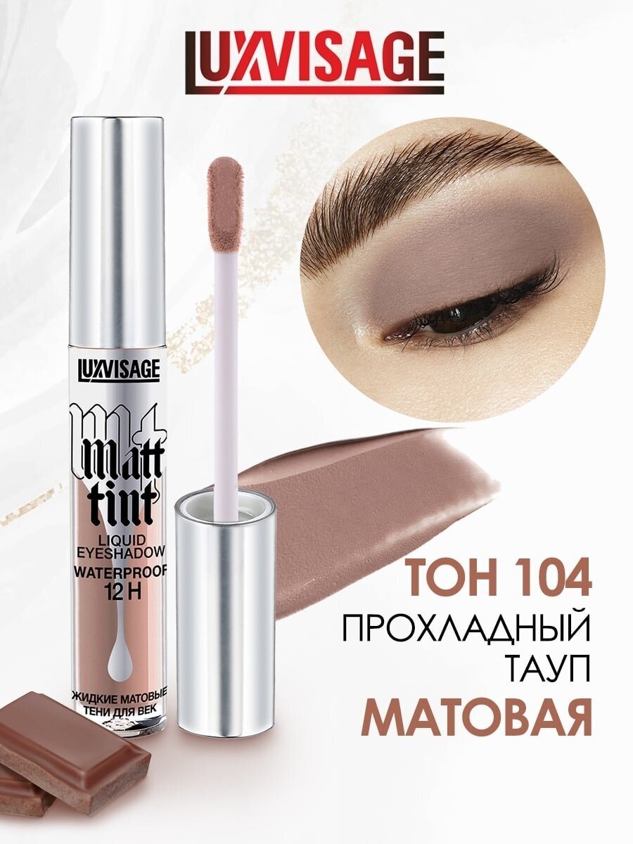 Luxvisage Жидкие тени для век MATT TINT WATERPROOF 12H тон 104 COOL TAUPE 3.5 г