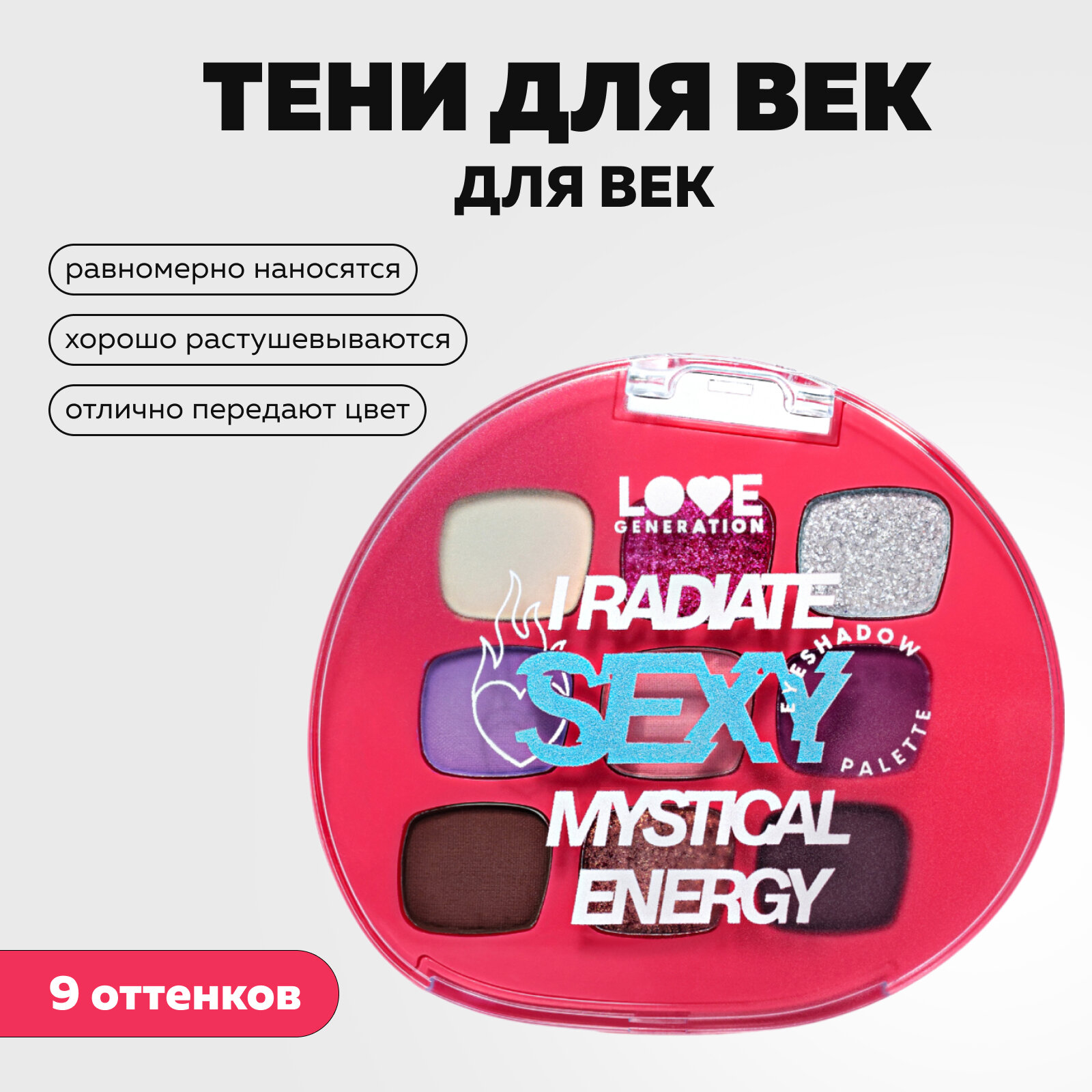 Купить Палетка теней для век Love Generation I radiate sexy mystical energy высокопигментированные оттенки, равномерное нанесение, тон 01, 9 оттенков, 7,2 г