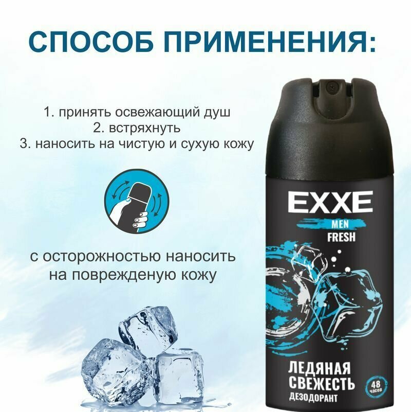 Дезодорант-спрей EXXE "FRESH", мужской, защита 48 ч, ледяная свежесть, 3шт по 150мл