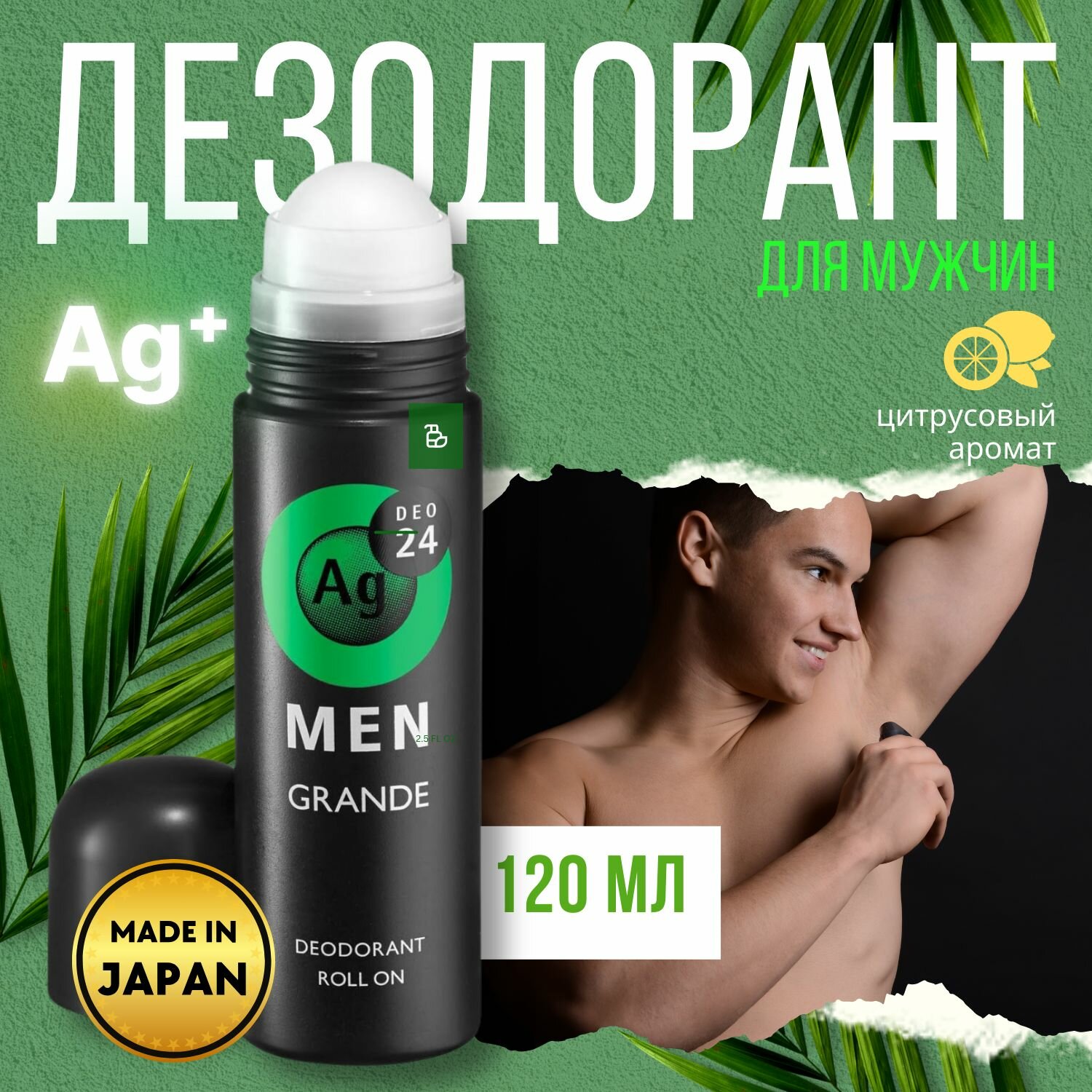 Finetoday Мужской роликовый дезодорант Ag Deo 24 Men с ионами серебра, цитрусовый аромат, 120 мл.