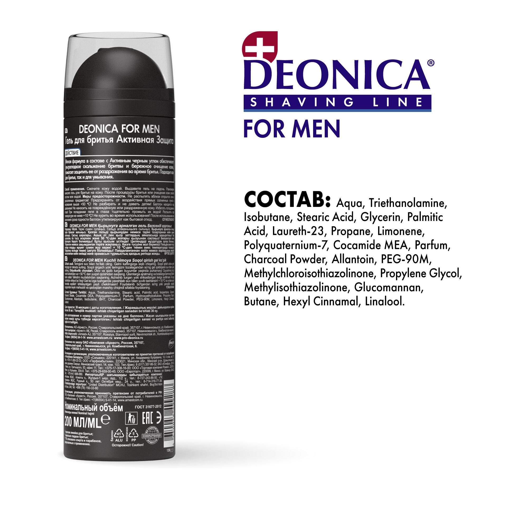 DEONICA FOR MEN Гель для бритья Активная защита с черным углём, 200 мл интересное: