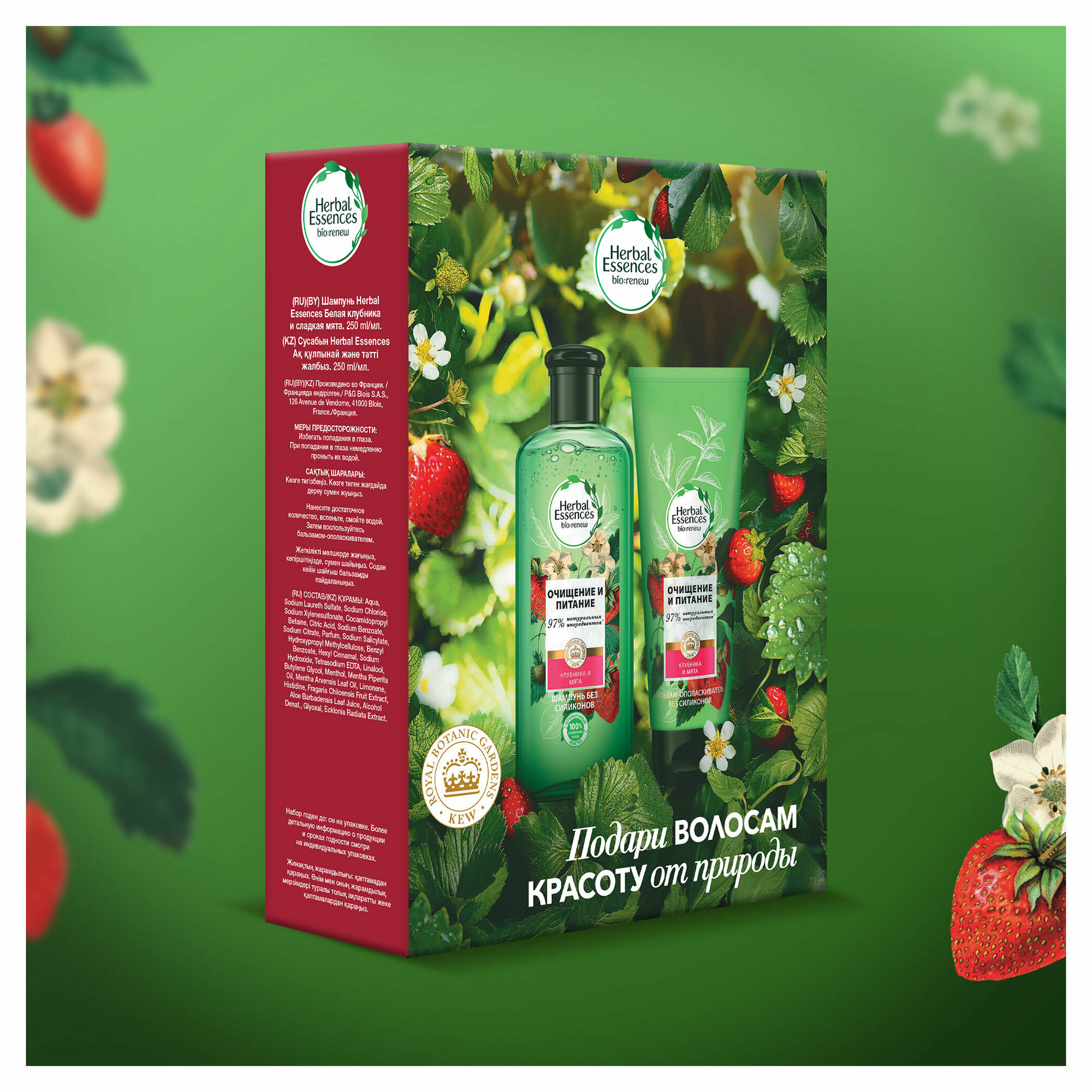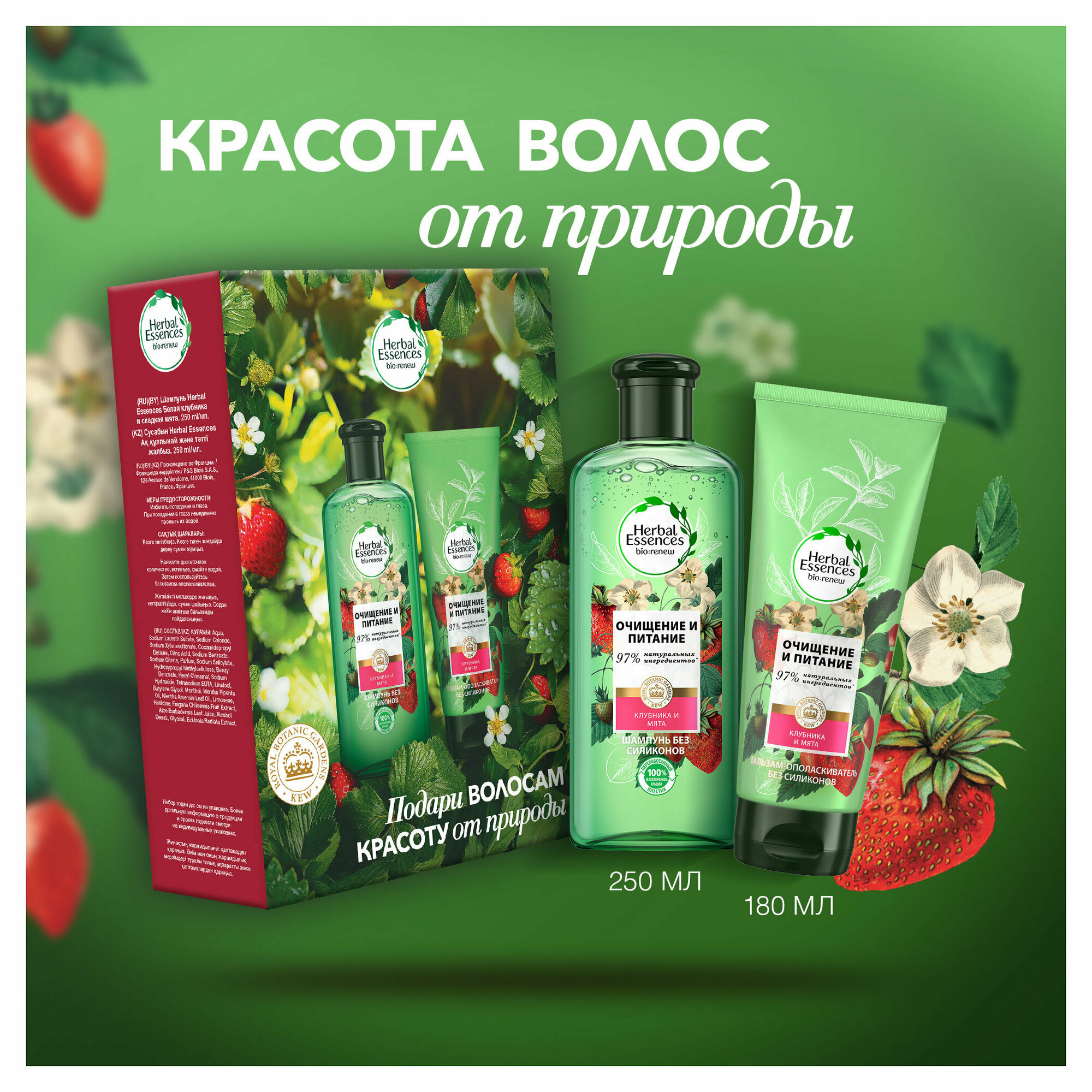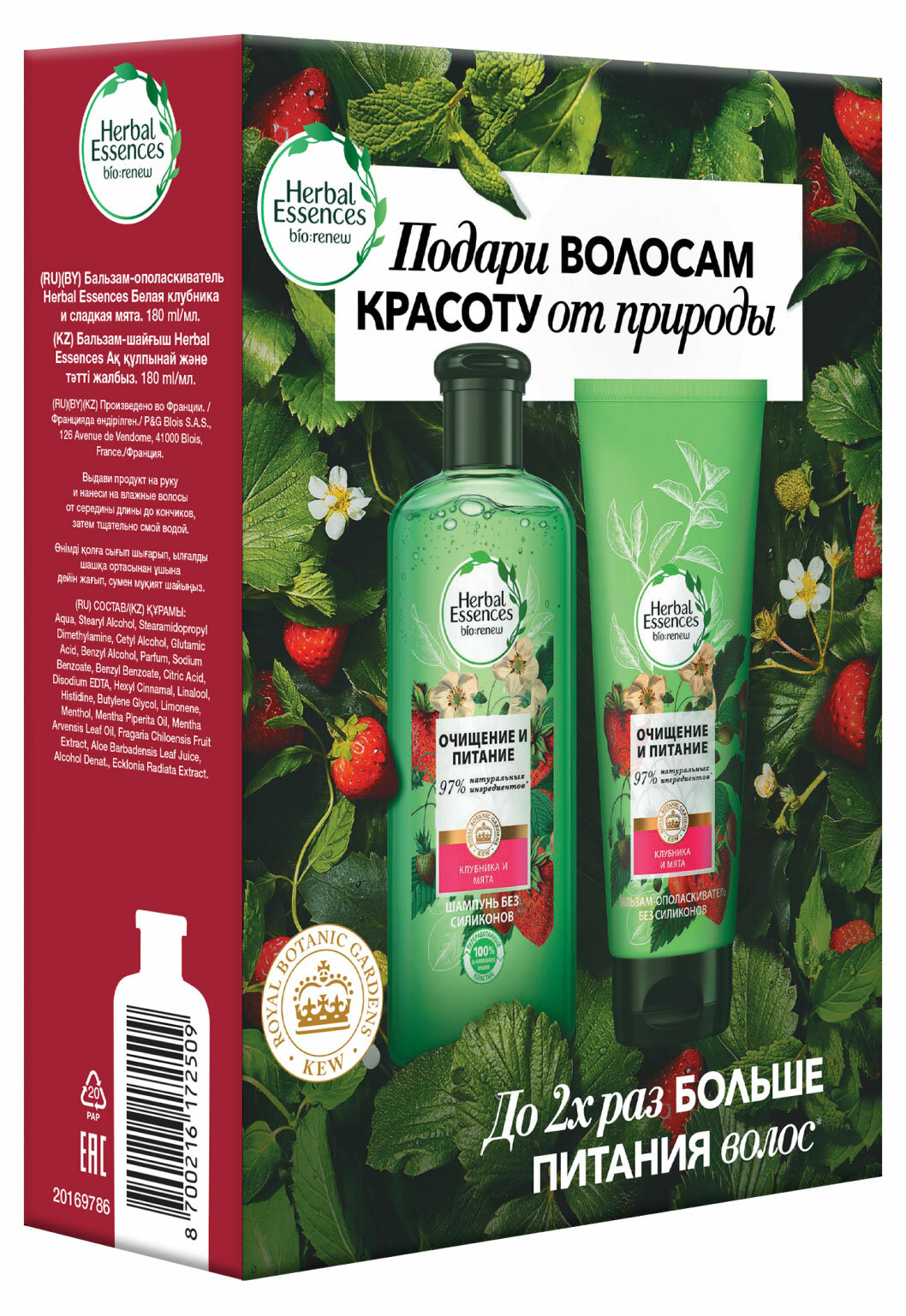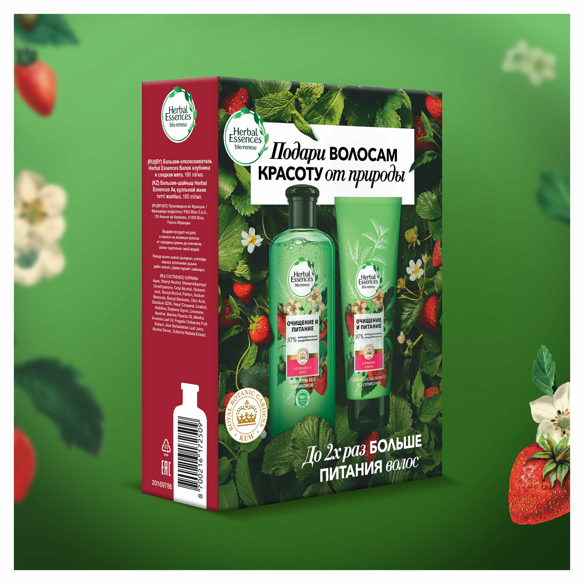 Набор для ухода за волосами Herbal Essences "Очищение и питание, клубника и мята", бальзам для волос 180 мл, шампунь 250 мл