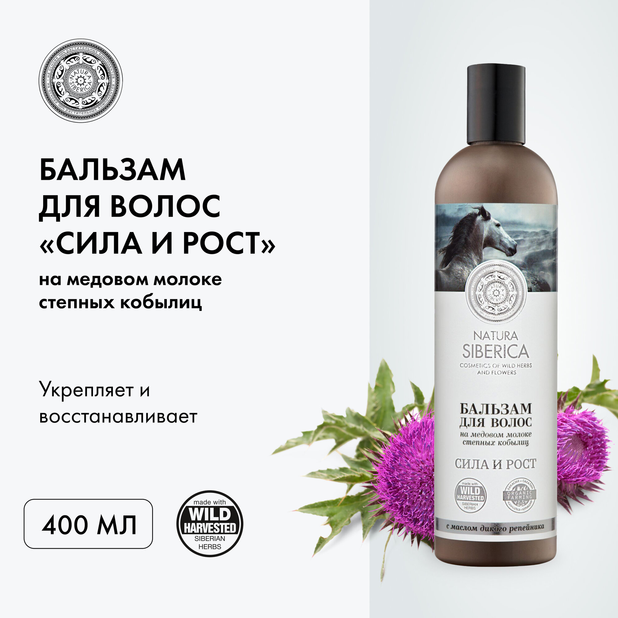 Купить Бальзам для волос Natura Siberica Сила и Рост кондиционер ополаскиватель укрепляющий, восстанавливающий 400 мл