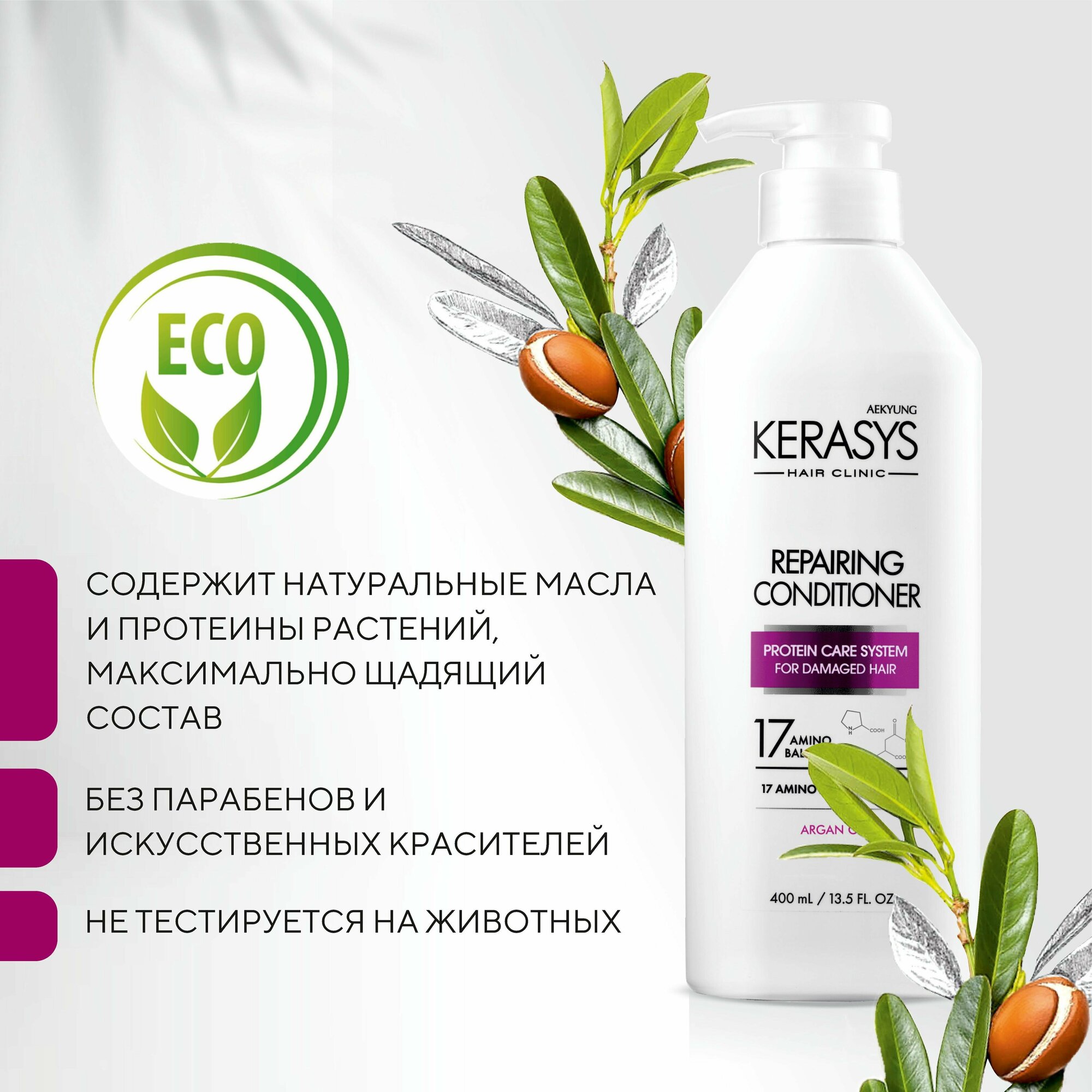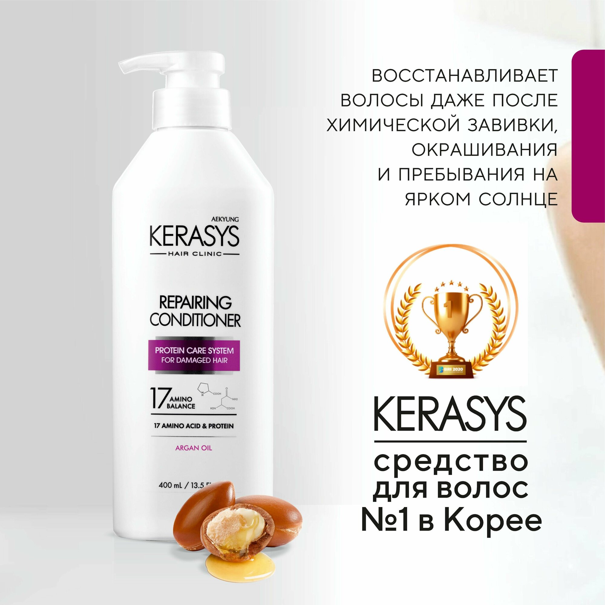Kerasys Кондиционер для волос восстанавливающий 400 мл корейский протеиновый для поврежденных, для окрашенных, сухих и ослабленных волос, женский