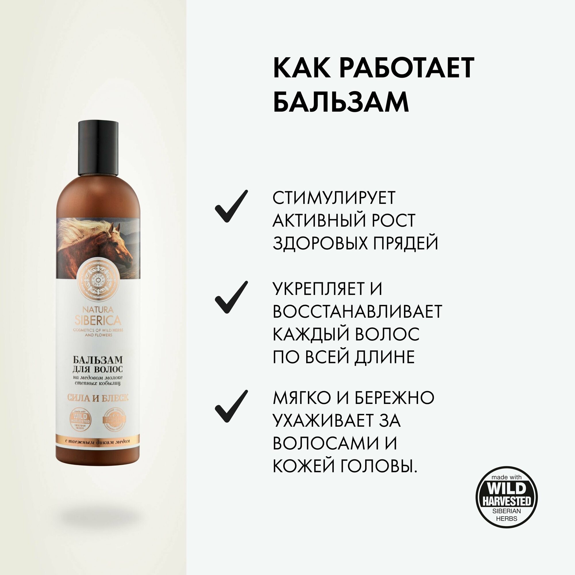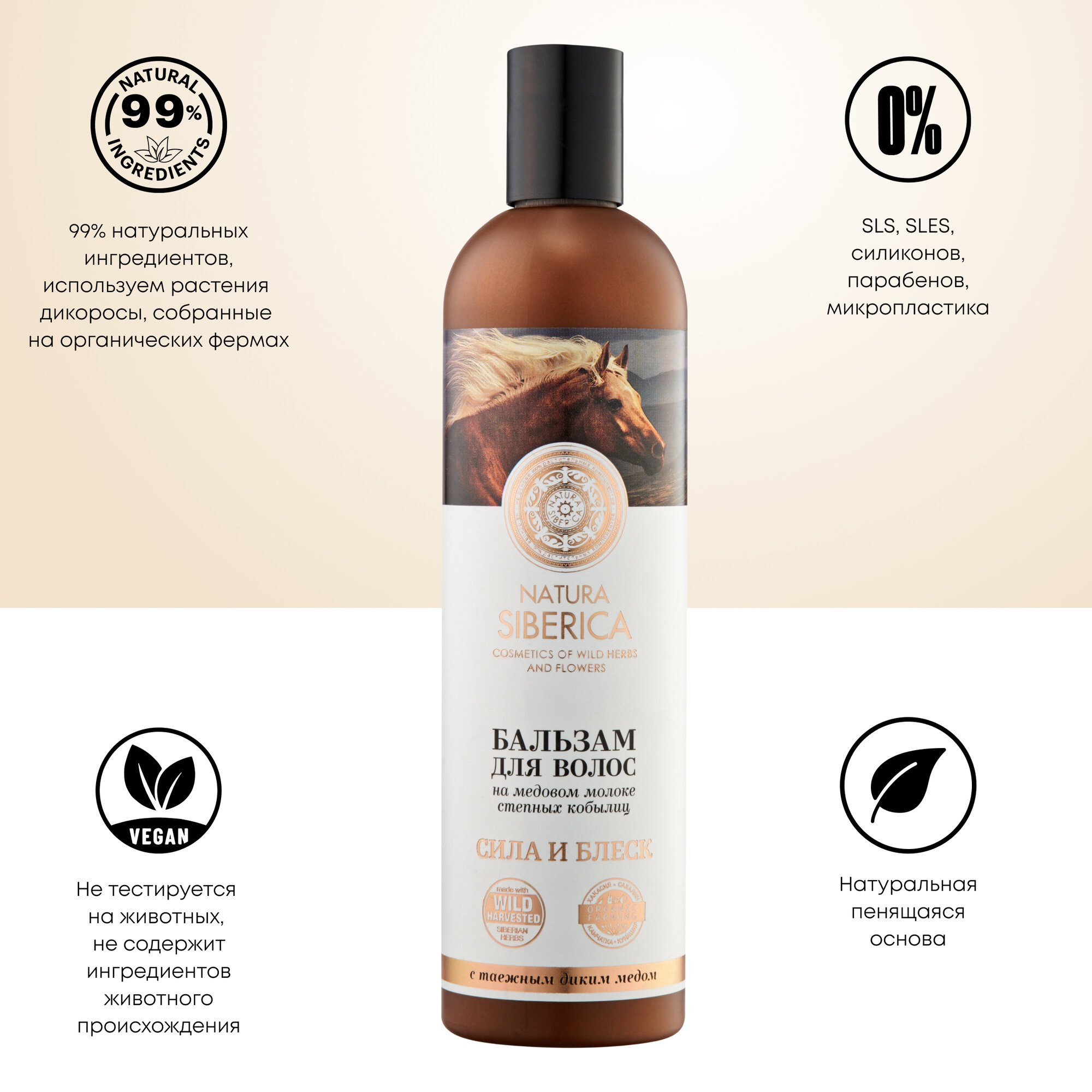 Natura Siberica Бальзам для волос увлажняющий восстанавливающий, разглаживающий питательный кондиционер ополаскиватель Медовый Кумыс Сила и Блеск 400 мл