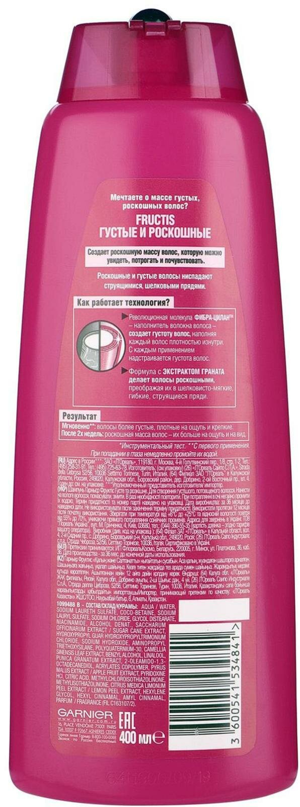 Garnier Fructis Шампунь для волос укрепляющий Густые и Роскошные для лишенных густоты волос, 400 мл