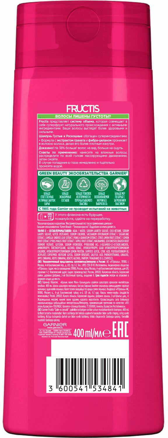 Шампунь для волос Garnier Fructis Густые и роскошные, 400 мл