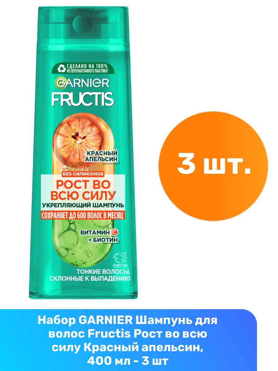 Купить GARNIER Шампунь для волос Fructis Рост во всю силу Красный апельсин, 400 мл - 3 шт