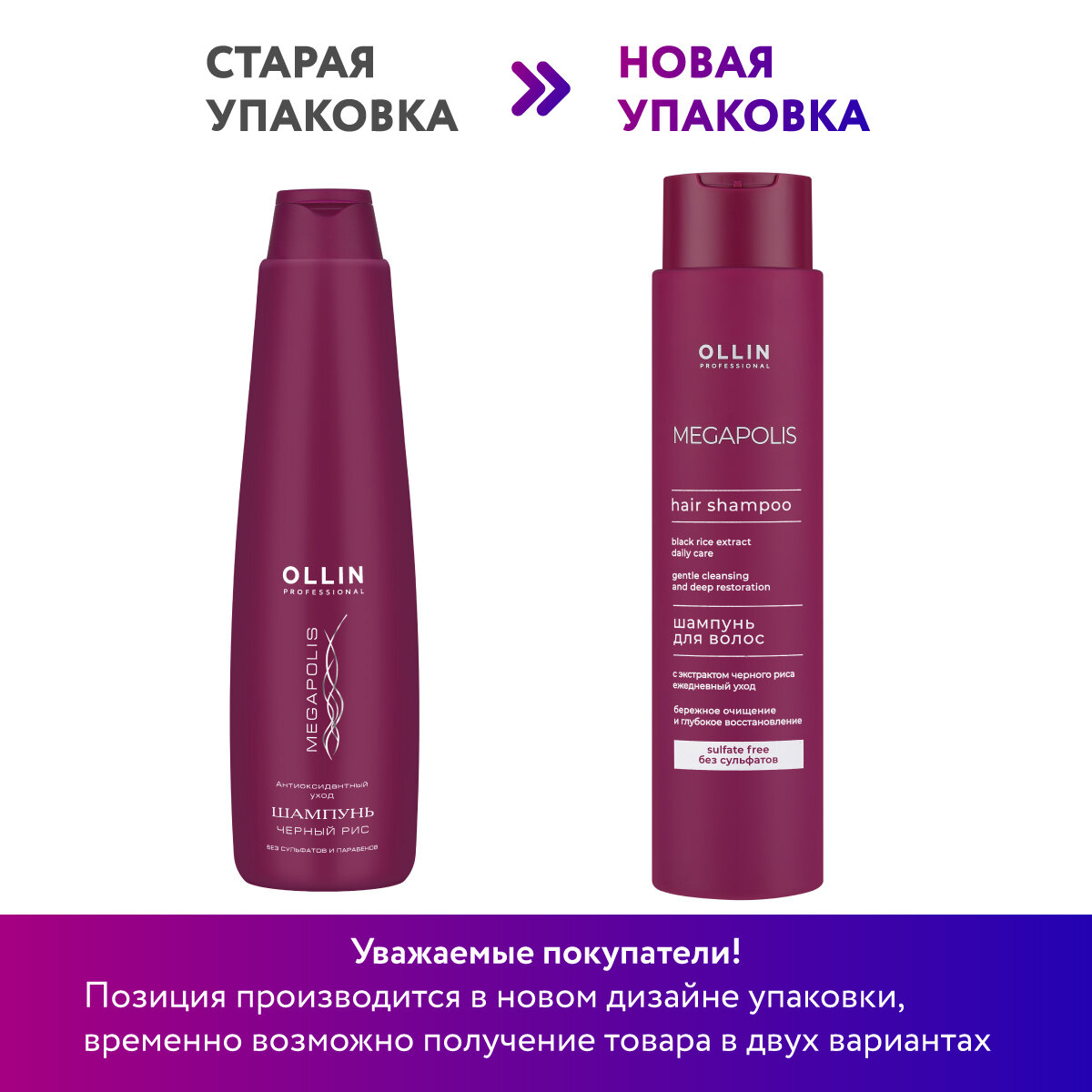 OLLIN MEGAPOLIS Шампунь с экстрактом черного риса 1000мл (без сульфатов и парабенов)
