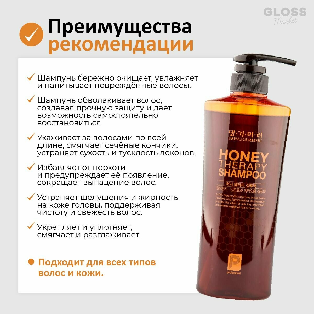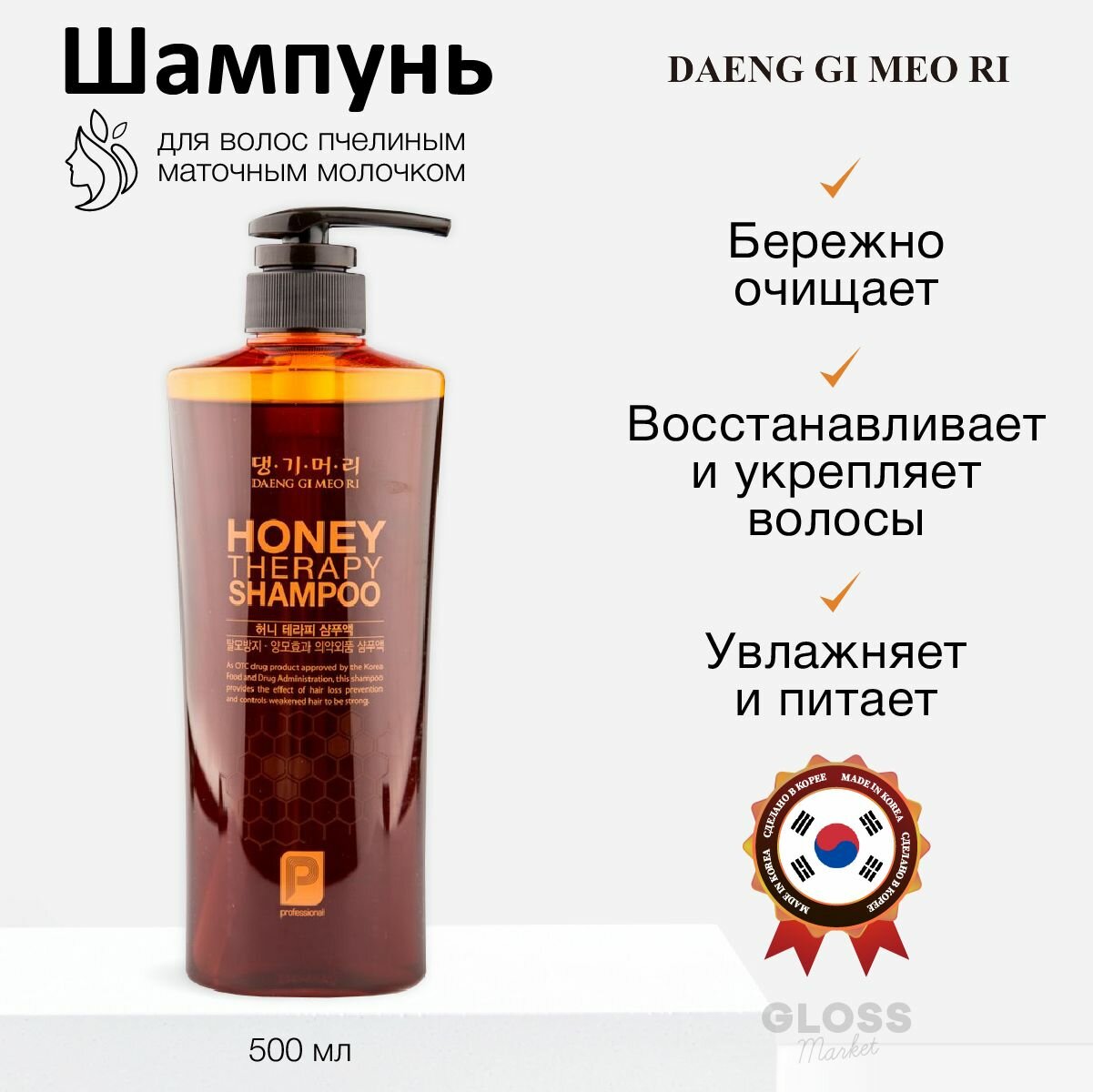 Шампунь с пчелиным маточным молочком Daeng Gi Meo Ri Professional Honey Therapy Shampoo, 500 мл