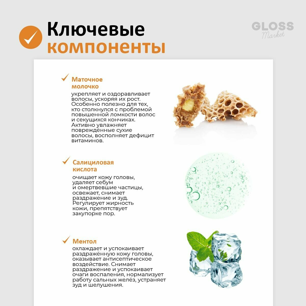 | Активный ингредиент | витамины группы B / глицерин / маточное молочко / ментол / пантенол / салициловая кислота / цинк |