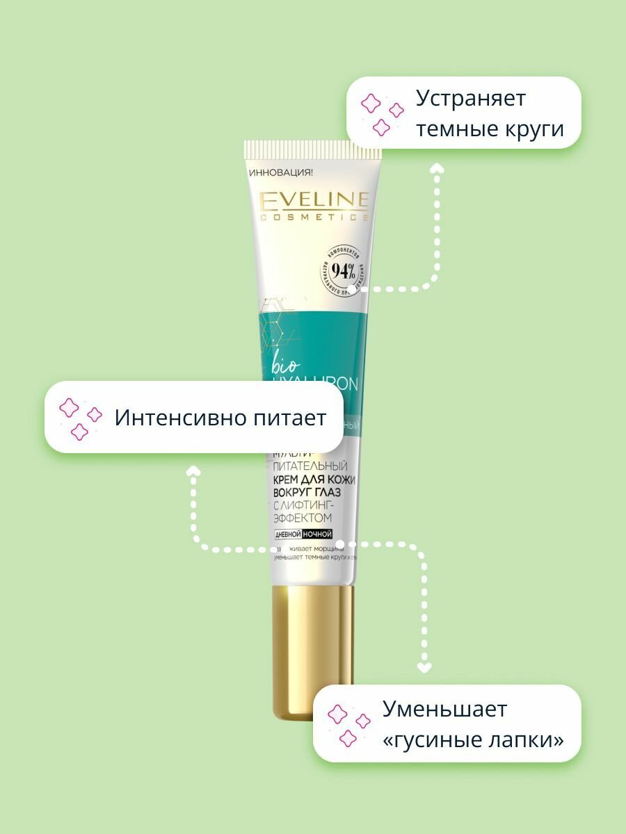 Купить EVELINE Крем для кожи вокруг глаз BIO HYALURON EXPERT мультипитательный с лифтинг эффектом 20 мл